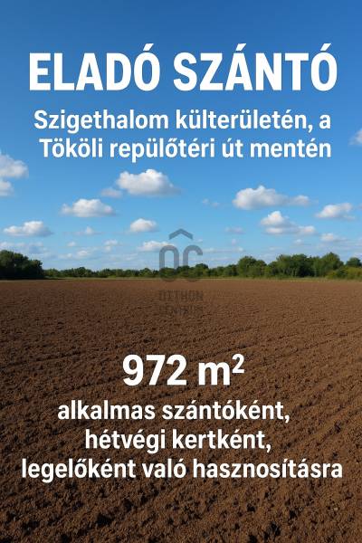 Eladó szántó Szigethalom külterületén – kiváló elhelyezkedéssel a Tököli repülőtéri út mentén!Szigethalom csendes, mégis könnyen megközelíthető külterületén kínálom megvételre ezt a 972 m²-es, szántó besorolású területet, amely számos lehetőséget rejt magában.A terület ideális választás:szántóként, kisebb mezőgazdasági tevékenységre,hétvégi kertként, kikapcsolódásra, hobbikertészkedésre,legelőként, állattartáshoz.A jó megközelíthetőség és a rendezett környezet miatt kiváló befektetési lehetőség is lehet azok számára, akik hosszú távon gondolkodnak.Csend, természet, sokféle felhasználási mód – mindez elérhető áron.Érdeklődés esetén szívesen adok további információt vagy időpontot a megtekintéshez!szántó, szigethalom, legelő, kert, termőföld
