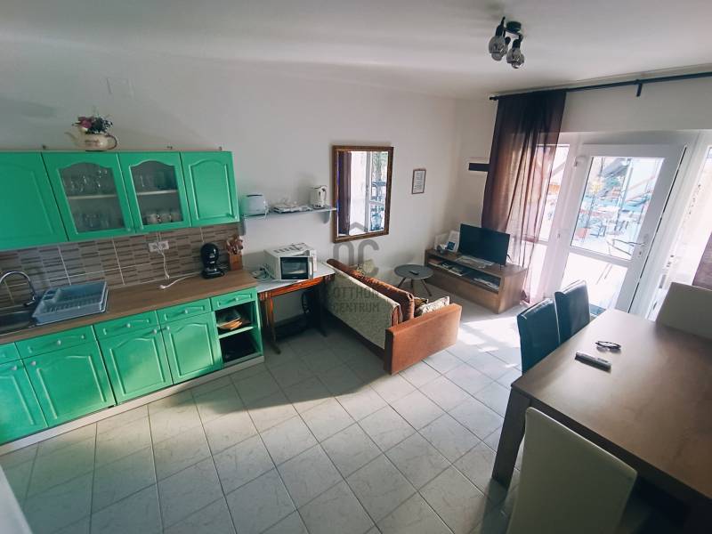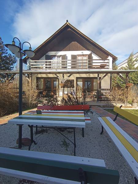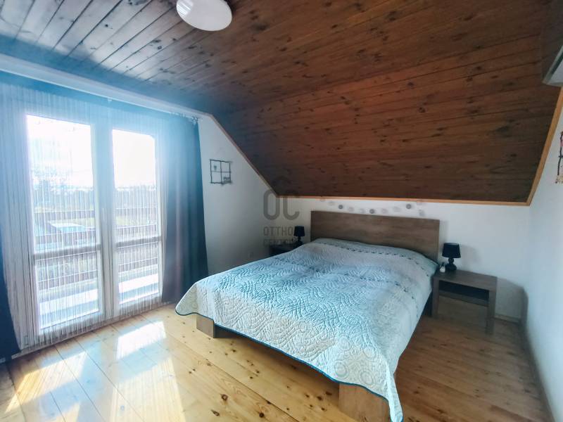 Zánkának a part felőli részén, gyalogtávolságra a parttól, egy hangulatos, felújított családi ház várja új lakóit!A tulajdoni lap szerinti lakóingatlan egy 1057 nm-es telken fekszik, ahol iker-formában, tükörszimmetrikusan alakították ki a ház lakóterét. A nagy teraszról két, egymástól függetlenül használható apartman van, mindkettő egy-egy nagy nappali-konyha, hálószoba, fürdőszoba+wc, illetve külön wc-s elrendezéssel a földszinten, az emeleten pedig még 2 hálószoba, és terasz található. A két lakrész igény esetén összenyitható, egyenként 58 nm-esek, plusz a terasz lent 27 nm, fent 11 nm. A ház tégla falazatú, szigetelést nem kapott, de minden elektromos rendszer, vízvezeték a felújítás során cserélve lett. Fűtéséről hűtő-fűtő klímák gondoskodnak minden helyiségben, a meleg vizet gázkazán biztosítja, de a fűtésrendszer a gáz üzemre nem lett kiépítve. A területen csatorna közmű nincsen.A telken, a lakóház mellett egy rusztikus és romantikus gazdasági épület is áll, amely egy kő falazatú, nádtetős borospince. Ez 45 nm-es alapterületű, tetőtere szerkezetkész, jelenleg raktár, de érdemes ennek a vendégszobává alakításán is elgondolkodni.Sétatávolságra található a vasútállomás, a buszmegálló és a strand. Az emeletről balatoni panoráma van.Kiváló lehetőség nagy, családi nyaralásokra, vagy egy új élet kezdeteként, akár nagycsaládosoknak, vagy két generációnak!Azonnal átruházható, tehermentes ingatlan, amely megfelel a csok+ feltételeinek is!