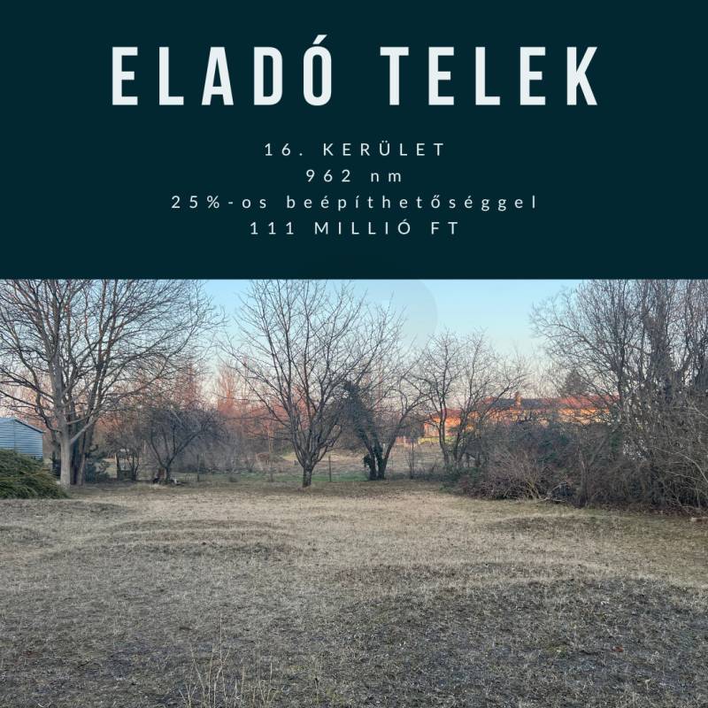 Megvételre kínálunk a 16. kerületben, Cinkotán egy 962 nm-es építési telket, amely ideális választás lehet új otthona megépítéséhez vagy befektetési célokra. A telek egy csendes, kertvárosi környezetben található, ahol a természet közelsége és a városi élet kényelme harmonikusan egyesül. Ez a lakóövezeti telek nemcsak méretével, hanem elhelyezkedésével is kitűnik. A csendes utcák és a barátságos szomszédság tökéletes hátteret biztosítanak a családi élethez. Az építhető ingatlan típusa: családi ház - 7,5 méter magasságban építhető a homlokozat így Ön szabadon tervezheti meg álmai otthonát. 19,71 m (utca fronti szélesség) x 48,61 m méretekkel rendelkezik a szabályos téglalap alakú telek.Közműveket tekintve: a víz és a gáz a telken belül megtalálható, a villany és a csatorna az utcában elérhető. Övezeti besorolása: Lke-1/XVI/Sz1Tájolása: dél-nyugatiA környék kiváló közlekedési lehetőségekkel rendelkezik, hiszen a közeli buszmegállók és a HÉV megálló révén Budapest belvárosa könnyen elérhető. Az autós közlekedés is egyszerű, mivel az M0-ás autópálya csupán néhány percre található, így a város többi részére is gyorsan és kényelmesen eljuthat. A környék biztonságos, és a csendes utcák ideálisak a gyerekek számára, akik szabadon játszhatnak a szabadban. Cinkota nemcsak a zöldövezetekről és a csendes utcákról híres, hanem számos helyi szolgáltatással is rendelkezik. A közelben található iskolák, óvodák és játszóterek mind hozzájárulnak ahhoz, hogy a családok számára ideális környezetet biztosítsanak. Ez a telek tehát nemcsak egy ingatlan, hanem egy lehetőség is, hogy megteremtse családja számára azt az otthont, amelyre mindig is vágyott. Ne habozzon, hiszen az ilyen kivételes ajánlatok gyorsan elkelnek! Kérjük, keressen minket bizalommal, ha bármilyen kérdése van, vagy szeretné megtekinteni ezt a páratlan lehetőséget. Az ingatlanpiac dinamikus, és mi itt vagyunk, hogy Önnek a legjobb döntést segíthessük meghozni.