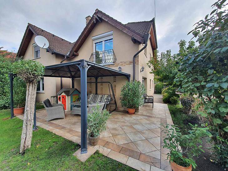 XVII. KERÜLETBEN: RÁKOSKERESZTÚRON, CSENDES MELLÉKUTCÁBAN, ELADÓ EGY KÖZEL NULLA ENERGIAIGÉNYŰ, JÓ ÁLLAPOTÚ, NAPPALI+ 4 SZOBÁS CSALÁDI HÁZ, NAGY MELLÉKÉPÜLETTEL, AMI MAGÁBA FOGLAL EGY DUPLA GARÁZST, VALAMINT EGY 60 M2-ES AMERIKAI KONYHÁS NAPPALI + 1 SZOBÁS LAKÁST. A TELEK 710 M2-ES, GYÖNYÖRŰEN PARKOSÍTOTT.A HÁZ JELLEMZŐI:Építész tulajdonosok által megtervezett, és magas minőségű anyagokból megépített, rendkívül jó elosztású, masszív családi ház.Az épületek elhelyezkedése miatt, nagy zöld területtel és intim kerttel rendelkezik. A ház az elmúlt években is folyamatos fejlesztéseken esett át, ennek köszönhető, hogy a 12 kw-os napelemrendszer, a hőszivattyús, mennyezeti fűtési és hűtési rendszerrel működtetve, fedezi a ház energiaigényét. Ugyanakkor rendelkezik gázkazánnal is.A homlokzat 15 cm-es dryvit szigetelést kapott, a nyílászárók szintén hőszigeteltek.A komfortot növeli a házhoz csatlakozó két fedett terasz.A nappali és szobák laminált parkettásak, míg a többi helyiség egyedi mediterrán stílusú járólappal burkolt.A konyha kialakításánál, az angol konyhastílus volt a meghatározó. A konyhabútor, tömörfából, méretre készült. A tűzhellyel együtt a vételár részét képezi. Ugyanakkor a házban található beépített bútorok is egyedileg, tömörfából készültek és szintén a vételár részét képezik.A nappali kandallóval ellátott.Az emeleten, yacht stílusát idéző pihenőszoba került kialakításra. Szintén az emeleten beépítésre került egy infraszauna is.Az összes hálószoba, nagyméretű gardróbszekrénnyel ellátott.A fürdőszobákban kád és zuhanyzó is helyet kapott, valamint a földszinten egy mosókonyha is rendelkezésünkre áll.A telken különálló melléképület, földszinti része 60 m2-es, 2 állásos garázs. Alkalmas elektromos autók töltésére. További 1 autó számára alakítottak ki fedett beállót.Az emeleten egy 60 m2-es, amerikai konyhás nappalis, 1 hálószobás, zuhanyzóval és káddal ellátott fürdőszobás lakás került kialakításra, ami igény szerint könnyen átalakítható, a válaszfalak áthelyezésével.A kertben teljes locsolóhálózat került kiépítésre.Az összes kapu és garázsajtó automatán működtetett.A ház fejlett kamera és riasztórendszerrel ellátott.ELRENDEZÉS:Főépület földszint: Konyha + étkező, nappali, hálószoba, fürdőszoba + mellékhelyiség, külön mellékhelyiség, közlekedő előtér, 2 db teraszFőépület emelet: 3 szoba, fürdőszoba + mellékhelyiség, kazánhelyiség, közlekedőA KÖRNYÉK:Az Akadémiaújtelep és Madárdomb szomszédságában, Rákoskeresztúr csendes mellékutcája, jó közlekedésnél. Közelben található iskola, óvoda, gyógyszertár, orvosi rendelő bevásárlási lehetőség.FINANSZÍROZÁS:Tehermentes. Az ingatlan hitelre is megvásárolható. Bankfüggetlen tanácsadóink, az ország összes pénzintézete közül gyorsan és gördülékenyen találja meg az Önnek legmegfelelőbb konstrukciót, egyedi kedvezményekkel. A hitel közvetítés díjmentes.IRÁNYÁR: 256 M FTVEVŐINK RÉSZÉRE A KÖZVETÍTÉS DÍJTALAN!A hirdetésben szereplő adatok tájékoztató jellegűek.