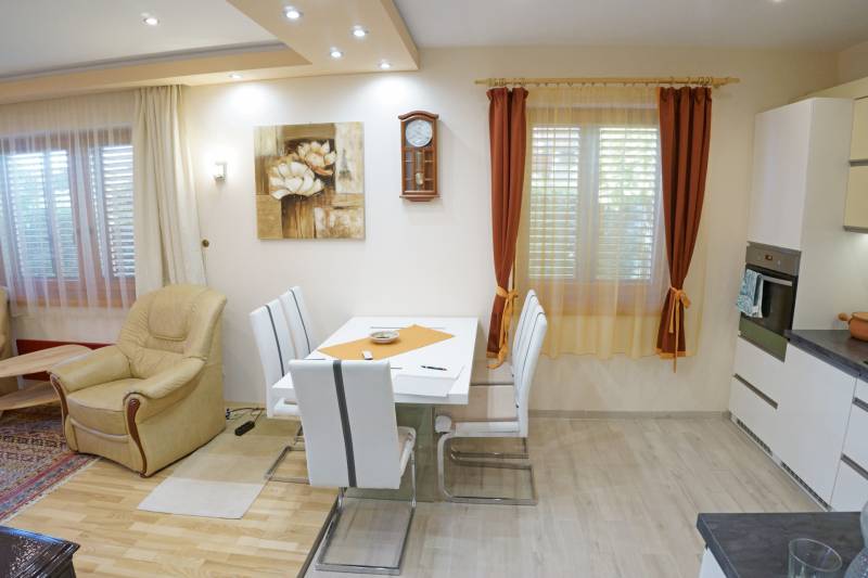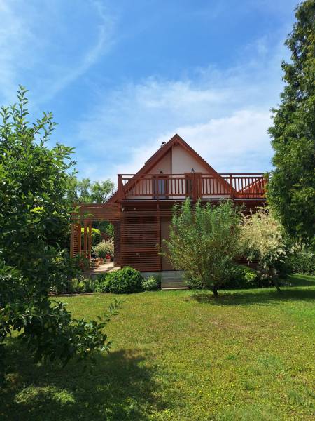 Badacsonyörsön, a Balaton partjától mindössze 100 méterre ajánlom figyelmébe ezt a kiváló adottságokkal rendelkező, prémium minőségű anyagokból épített két szintes, modern családi házat gyönyörű kerttel és saját balatoni stéggel.A földszint a bejárati ajtón, a garázson keresztül, de akár a terasz felől is megközelíthető, ezen a szinten található a konyha-étkező, nappali, egy szoba, fürdőszoba, és a vendég mosdó is, az emeleten két szoba, és egy fürdőszoba került kialakításra.Az emeleti rész igény szerint még egy szobával bővíthető a garázs feletti részen. Ezen a szinten is található terasz, melyről gyönyörű balatoni panoráma tárul elénk!Az ingatlanhoz kapcsolódó további adatok:-38-as Porotherm téglából épült 2016-ban- 15 cm-es szigetelés a külső falakon- 3 rétegű hőszigetelt üvegek, egyedileg gyártott spalettákkal, minden ablakon szúnyoghálóval- a terasz elektromosan vezérelhető szúnyoghálóval ellátott, üvegfallal téliesített- hűtő-fűtő klíma- 9.6 kwatt fafűtéses norvég típusú kandalló- 3 fázisú ipari áram- napelemek-automata öntözőrendszer- fúrt kút, csöpögtető/locsoló rendszer kialakítva- komplett kamera és riasztórendszer- visszanézhető jelzőrendszer mobiltelefonraNyaralónak, de állandó lakhatásra is tökéletesen megalkotott és átgondolt otthon! Ha szeretné itt élni a mindennapokat, vagy csak kiszakadni a hétköznapokból és egy második otthonban eltölteni a szabad napokat, ez az ingatlan a tökéletes választás!Az ingatlanhoz tartozó saját stég pár perces sétára található, így egy hajó (opcionálisan a házhoz és stéghez vásárolható elektromos hajó), de akár csónak elhelyezése és kikötése sem okozhat problémát az új tulajdonos részére. A stég - méretéből adódóan - alkalmas napozóágyak elhelyezésére is, így remek kikapcsolódást nyújthat a család részére karnyújtásnyira a háztól!Amennyiben kérdése merülne fel az ingatlannal kapcsolatban vagy szeretné azt megtekinteni, kérem keressen a megadott elérhetőségek egyikén!