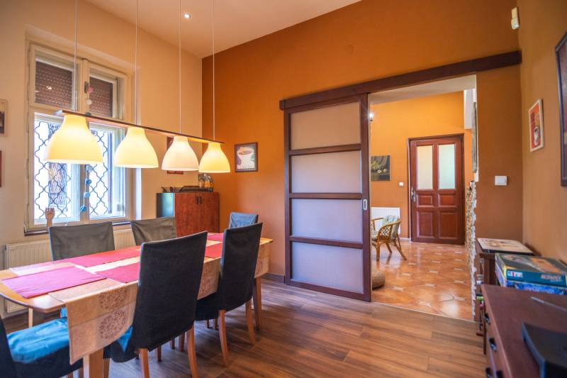 Eladásra kínálok 16. kerület családi házas részen, Rákosszentmihályon, az Árpád utcában egy gyönyörű, belső három szintes, jó állapotú hét szobás családi házat.A családi ház fő falai az 1920-as években kerültek mostani helyükre, viszont 2004-ben csak a fő falakat hagyták meg a tulajdonosok, és újjá építették az egészet. Kényelmes méretű nappali, és hálószobák lettek kialakítva, melyek 14, 16 es 18 nm-esek, a nappali 25 nm. Az emeleten helyet kapott egy tea konyha is, így nem kell mindenért a földszintre rohanni. A ház nettó 289 nm, bruttó 303. A pincében kapott helyet a gépészet, mely folyamatosan karbantartott, valamint 2 tároló helyiség is van, összesen 36 nm a pince. A nagykaputól a garázsig …. Burkolat vezet, a garázs 2 állásos, de tároló polcok is kényelmesen elférnek benne, összesen 38 nm. A ház egy 1258 nm-es telken helyezkedik el, mely szabályos téglalap alakú, és cserjék, fák, és egy nagy fügefa otthonául szolgál. Iskola, ovi 800 m-re, gyógyszertár 400 m-re, buszmegállók 200 m-re található.Kiválóan alkalmas sokgyermekes családoknak, de akar 2 generáció össze költözésére is!