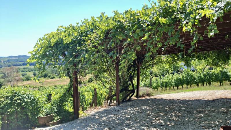 A Szent György- hegy déli oldalán, Kisapáti külterületén SZŐLŐBIRTOKOT ( további területek vásárolhatók hozzá ) vagy AZONNAL BIRTOKBA VEHETŐ NYARALÓT keresők figyelmébe ajánljuk!KIEMELT MEGBÍZÁS, CSAK AZ OTTHON CENTRUM KÍNÁLATÁBAN!Télen- nyáron könnyen megközelíthető, a tanúhegyekre ( CSOBÁNC, TÓTI-HEGY, GULÁCS, BADACSONY ) és a BALATONRA panorámás birtok teljes nyugalmat biztosít a mai rohanó világban.A házhoz tartozó telek mérete 3189 m2, melyen a szőlő új telepítésű fehérszőlő ( sauvignon blanc és viognier ). A szomszédos 2438 m2-es szőlő ( sauvignon blanc, kéknyelű és rózsakő) és egy hegymagasi 3868 m2-es telek ( cabernet franc és syrah ) is megvásárolható jelenlegi kínálatunkhoz.A PRÉSHÁZ már az 1858- as térképen is megtalálható.- 3 hálószoba, 2 fürdő, tároló és egy konyha- étkező került kialakításra ( 2003-ban bővült,, brutto 88 m2)- víz és villany bevezetve, fa nyílászárók zsalugáterrel felszerelve- kőből és téglából épült cserép héjazattal, riasztó bekötve- fűtése elektromos NOBO fűtőpanellel és kályhával megoldott, hűtéséről klíma gondoskodik- a bejárat előtt 16 m2-es fedett terasz áll rendelkezésre, faoszlopai cserét igényelnek- a házat körülölelő örökzöldek és a 4 állásos kocsibeállónak épült vadszőlővel és lilaakáccal befutatott lugas privát szférát biztosít- a kertben találunk diófát, fügét, rozmaringot és levendulát - automata öntözőrendszer A PINCE új építésű, tégla.- méretét tekintve 34 m2- rozsdamentes tartályok, musthűtő,hidraulikos prés, termosztátos Nobo fűtőpanel- a pince tetején a faburkolat cseréje után BALATONI PANORÁMÁS TERASZ alakítható ki- a birtokon prémium szegmensbe bevezetett borok készülnekA birtokhatáron és a szőlőben rakott terméskő falak épültek, kovácsoltvas kapuval.Mivel nem kifüggesztés köteles, rövid határidővel birtokba vehető.Ha kérdése merülne fel vagy szeretne időpontot egyeztetni a személyes megtekintésre, várom megtisztelő hívását!