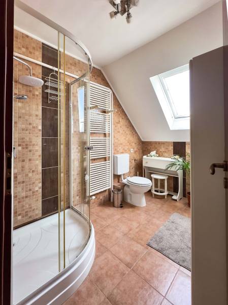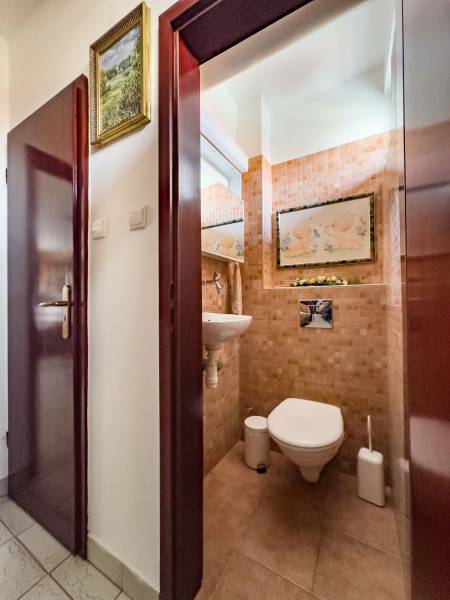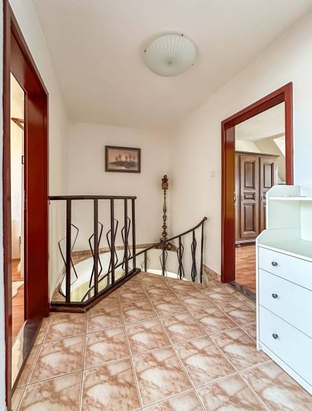 LeírásXVIII. kerület Gloriett-telep, Gilice téren csendes, rendezett és nyugodt családi sorházas részén eladó egy háromszintes lakóház.Az ingatlan a 90-es években épült, a felső két szinten összesen 80 m2 lakóterülettel rendelkezik, pinceszinten egy 41 nm-es zárt garázs + tárolóval. Ezen felül tartozik hozzá egy 30 nm zárt kertrész is, amit a nappaliból lehet megközelíteni, a garázs előtt pedig plusz egy autónyi beálló van még.A pinceszinten garázs, szerelősarok és külön tároló található, a földszinten konyha, kamra, WC, előszoba és nappali. A pinceszintről csigalépcső vezet a földszintre és az első emeletre, ahol egy félszoba és egy nagy hálószoba található a tágas előtér és a fürdőszoba mellett.A padlás hatalmas tároló területtel rendelkezik, igény szerint beépíthető.Az ingatlan pár éve felújításon esett keresztül, kazáncsere, fürdőszoba és WC felújítás, légkondicionáló beszerelése, a garázsban tusoló kiépítése és melegvíz bojler beépítése, garázskapu csere történt. Az összes ablak és a bejárati ajtó is ki lett cserélve, redőnyös mindegyik.A környéket kiváló közlekedés és infrastruktúra jellemzi: Spar, DM, Aldi, Lidl, Penny pár perc séta távolságban. Buszmegállók 5-7 perc sétára.Bókay-kert közvetlen szomszédságában, a Halmi erdő közelében található, ami kitűnő lehetőséget kínál sportolásra vagy akár kutyasétáltatásra.Osztatlan közös tulajdonú az ingatlan, de minden elszámolás saját mérő alapján történik.Az ingatlan per- és tehermentes és hitelezhető.Fontos, hogy most van folyamatban az önálló HRSZ, megállapítása!