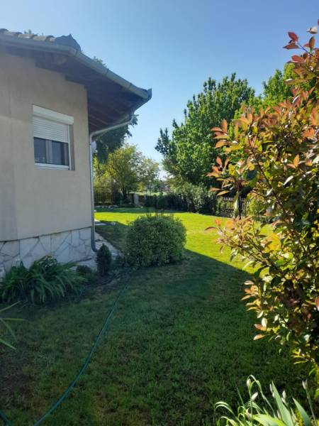 Kápolnásnyéken kiváló közlekedési környezetben kiadó a képeken látható 140 négyzetméter lakótérrel rendelkező családi ház.Kápolnásnyék a Velencei-tó keleti oldalán helyezkedik el. A két legfontosabb elérhetőségi útvonala az M7-es autópálya és a 7-es főút, de a vasúti közlekedés is kiváló Budapest irányában.Az ingatlan kifejezetten tágas lakótérrel rendelkezik, amely kényelmes helyet biztosít akár egy nagyobb család számára is.A 47 négyzetméter alapterületű nappali-konyha-étkező közvetlen terasz és kertkapcsolattal rendelkezik.A konyha háztartási gépekkel felszerelt.Az elszeparált életteret három nagyobb méretű hálószoba biztosítja, ezen kívül rendelkezésre áll kettő kisebb méretű szoba, amely igény szerint gardróbszobaként és dolgozószobaként is funkcionálhat.A tágas háztartási helyiség praktikus helyet biztosít a gépészetnek és a szükséges háztartási eszközöknek.A kettő autóbeállóhellyel rendelkező garázs 30 négyzetméter alapterületű, amely a lakórészből közvetlenül megközelíthető.A lakás légkondicionáló berendezéssel felszerelt.Az ingatlan fűtését gázcirkó kazán biztosítja.A kert parkosított. A szabadidő eltöltéséhez kerti grillezőhely és jakuzzi áll rendelkezésre.Azonnal költözhető.A bérlethez két havi kaució szükséges.Bővebb információért várom jelentkezését!