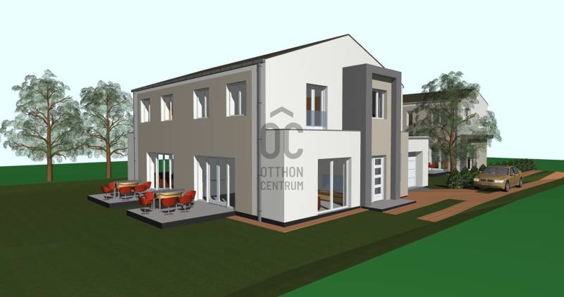 Eladó Két Szintes Ikerház Budapest XVIII. kerület, AlmáskertbenCím: 1188 Budapest, AlmáskertÁr: 149 900 000 FtAlapterület: 146 m2Szobák száma: 5Telek területe: 1300 m2 (min. 400 m2 privát rész lakásonként)Budapest egyik legkedveltebb, csendes és zöld övezetében, Almáskert részén kínáljuk eladásra ezt a két szintes, 146 m2-es bruttó, nettó 120.88m2 modern ikerházat új építésű házak szomszédságában, 1300 m2-es telken. Az ingatlan szigorú környezetvédelmi és energetikai elvárásoknak megfelelően épül!Amerikai-konyhás nappali (34,08 m2), közvetlen kertkapcsolat és 15 m2 terasz, 3-4 külön bejáratú hálószoba, 19,8m2 garázs hőszigetelt, elektromos kapu előkészítéssel, 2 fürdőszoba, erkély 2.11m2, erkély 6.61m2Egyedileg leválasztott, saját telekrész és privát kerítés-Modern levegő-víz hőszivattyú és padlófűtés, 2 db inverteres hűtő-fűtő klíma (nappaliban és az emeleti közlekedőben)-Minőségi, választható burkolatok, szaniterek, beltéri ajtókBelső tartozékok, szaniter árak:-beltéri ajtó kilinccsel 80.000 Ft/db-kád tartozékaival 80.000 Ft/db-csap 20.000 Ft/db-mosdó 20.000 Ft/db-plusz víz csatorna kiállás kérésre 50.000 Ft/db-villanykiállás fejegységenként 30.000 Ft/db-Kerti csap ára kompletten szerelve: 100.000 Ft/db-elektromos tolókapu,-elektromos garázskapu,-napelem előkészítés,-komplett kamerarendszer riasztóval kiépítveKiváló, megbízható kivitelező, referencia házakkal a közvetlen közelbenVárható kezdés: 2025. szeptember, átadás: 2026. decemberAz ár a kulcsrakész állapotra vonatkozik! Ideális választás családoknak, akik tágas, modern, energiatakarékos otthont keresnek kiváló szomszédsággal.English versionFor Sale: Classic Semi-Detached Family House in District XVIII, Almáskert, BudapestAddress: 1188 Budapest, AlmáskertPrice: 159,000,000 HUFSize: 146 m2Number of rooms: 5Plot size: 1,300 m2 (min. 400 m2 private per unit)In one of Budapest\'s most popular, quiet, and green areas – Almáskert – this modern, newly built, classic two-storey, 146 m2 semi-detached house is for sale, on a spacious 1,300 m2 plot, surrounded by upscale new homes. The building will fully comply with the latest environmental and energy standards!Open-plan kitchen-living room (34.08 m2), direct garden connection and 15 m2 terrace3 separate bedrooms25.17 m2 insulated garage with electric gate preparation2 bathroomsPrivately fenced plot segment for each unitModern air-to-water heat pump with underfloor heating, plus 2 inverter A/C unitsHigh quality, customizable flooring, sanitary ware, interior doorsAlarm system preparationReliable, professional builder with reference houses nearbyConstruction start: September 2025, expected completion: December 2026The listed price is for fully finished, turnkey condition! An excellent choice for families seeking a spacious, modern, energy-efficient home in a premium neighbourhood with great community.