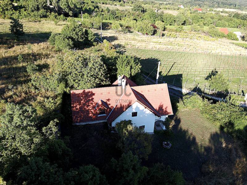Magyarország „Toszkánája”, a rangos gasztronómiával rendelkező Köveskál, ma egyre inkább kedvelt a kerékpáros és más kirándulók körében, mivel a Ka’l régió „központja”, mely természeti szépségével és nyugalmával azonnal rabul ejti az erre látogatókat!Ebben a csodás környezetben, csupán néhány kilométerre a Balatontól, ajánlom figyelmébe ezt a 3038 nm-es telken elhelyezkedő 122 nm-es hasznos alapterületű kétszintes épületet. Az ingatlan az 1970-es években épült kőből és a jelenlegi tulajdonosa 1995-ben fejezte be a volt présház bővítését és teljes körű felújítását, amit azóta is rendben tart és gondoz.A ház alsó szintjén egy étkező kapott helyet, egy konyha, egy hálószoba és a régi boltíves borospince. A felső szintre egy kényelmes lépcsőn jutunk fel, ahol egy nagyméretű hálószoba található, amely saját bejárattal is rendelkezik az épület hátsó részénél. Ezen kívül egy tusolós fürdőszoba és egy hatalmas nappali, ahol még egy háló részt is találunk, amelyet az új tulajdonos könnyedén leválasztva, még egy különálló hálószobává alakíthat.A telken áram, víz van, ami 2 ciszternából származó víz és ivóvíz, amit egy közeli, idilli természeti forrásból szerezhetünk be.Az épület fűtése két kandallóval van megoldva a lenti és fenti részen egyaránt.A telek az aszfaltos út után, körülbelül egy km-es murvás-köves úton elérhető, melynek nagy része aránylag jól járható, terepjáró, suv előnyösebb.A Balaton-felvidéki Nemzeti Park területén elhelyezkedő ingatlan minden részéről csodálatos panorámában lehet részünk.Köveskál turisztikai jelentőségét növeli hagyományos borvidéke, a Balaton partjának közelsége, valamint az itt található minőségi éttermek, szállodák, kávézók és borospincék is!Akár saját részre keres ingatlant, akár befektetés céljából, megbízható ingatlankezelő is rendelkezésre áll.Kifüggesztés köteles!Amennyiben felkeltettem érdeklődését az ingatlannal kapcsolatban kérem keressen az alábbi elérhetőségek egyikén!