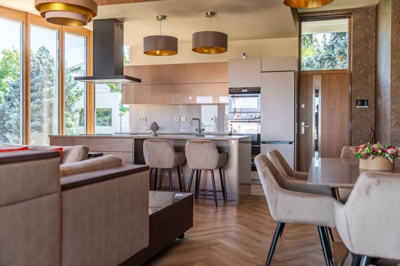 Egy ingatlan, amely újradefiniálja a prémium otthon fogalmát: háromszintes ikerház-rész lifttel, pazar panorámával és kiemelkedő minőséggel. Üdv itthon! RÖVID ÖSSZEFOGLALÓIII. kerület Testvérhegyen, Domoszló útján eladó ez a 2024-ben épült ikerház jellegű, jogilag társasházként nyilvántartott kivételesen magas minőségű lakás. A telek össz. területe 2030m2, melyre 2 épület, 2-2 lakással épült. A ház nyélen keresztül megközelíthető, így az utcától védett, csendes és privát. A kert megosztásra került, így a lakáshoz tartozik egy 111m2-es privát kertrész. A lakás alapterülete a garázsszinttel és a beépített terasszal együtt 206m2, melyhez tartozik egy 48m2-es tetőterasz csodás zöld panorámával, illetve a hálószobákból nyíló további 30m2 erkély. Három szinten 4 háló, ebből háromnak saját fürdője van, dupla állásos garázs elektromos töltővel. A beruházó magának tartotta meg, saját ízlése és igényszintje szerint fejezte be. Eddig jól hangzik? Alább részletesebben a további információk.LOKÁCIÓ – TESTVÉRHEGYA Domoszló út környezete Testvérhegy egyik legkedveltebb része – egy olyan kertvárosi szeglet, ahol a családok nyugalmat, biztonságot és minőségi életet találnak, miközben a főváros pezsgése is karnyújtásnyira van.Itt reggelenként friss levegő madárdal és hegyi panoráma látványa fogad, de iskola, bolt, kávézó vagy uszoda sincs több mint pár perc autózásra vagy sétára. A környék rendezett, gondozott, tele van családi házakkal, óriási fenyőkkel és meglepően jó közösséggel. A Domoszló út ugyan csendes, de közlekedési szempontból kiválóan elérhető: az M0-s gyorsforgalmi út, az Árpád-híd vagy épp Békásmegyer vasútállomása is rövid idő alatt elérhető autóval.Kiváló infrastruktúra – Minden, ami a család kényelméhez kellIskolák, óvodák: A környék kiemelkedő oktatási lehetőségeket kínál, köztük a népszerű Csillaghegyi Általános Iskola, a Bárczi Géza Általános Iskola vagy a Waldorf Óvoda és - Iskola is rövid autóútra található.A közeli Auchan, Decathlon és OBI áruházak mellett elérhető a Római-parti kis piac, a Lajos utcai termelői piac, vagy épp a helyiek egyik kedvence, a Csillag Center, ahol minden kéznél van – patika, posta, pékség és kávézó is. Több magánorvosi rendelő, gyermekorvos és a Szent Margit Kórház is gyorsan elérhető szükség esetén.A környék valódi ereje nemcsak a praktikum, hanem az életminőség:A Római-part 10 percen belül elérhető – bicikliúttal, éttermekkel, fagylaltozókkal és a Dunára néző stégekkel, ahol egy családi délután is nyaralásnak tűnik. A Duna-parti sétány, a Kossuth Lajos üdülőpart és a Fellini Római Kultúrbisztró a helyiek kedvenc találkozóhelyei – kulturális programokkal, élő zenével, naplementés borozásokkal. Csillaghegyi Árpád Forrásfürdő: teljesen felújított, egész évben működő wellness- és élményfürdő – beltéri medencékkel, szaunavilággal, családi élményzónával. Hármashatár-hegy vagy a közeli Kevély-erdő pedig tökéletesek egy hétvégi túrázáshoz, családi piknikhez vagy kutyasétáltatáshoz.A HÁZA ház friss, 2024-es átadással, gondos tervezés és kivitelezés eredményeként jött létre. Az ingatlan már az első pillantásra lenyűgöz: a karakteres, mégis elegáns homlokzat, a nagy üvegfelületek és az egyedi formavilág azonnal kiemelik a tömegből. Az épületben saját, privát lift található, amely megkönnyíti a mindennapokat – generációkon átívelő otthonná is válhat.A három szinten elosztott lakótér belsőépítészetileg is kivételes: letisztult, mégis meleg enteriőr, prémium burkolatok, időtálló anyaghasználat, és minden apró részletre kiterjedő figyelem jellemzi. A nappali tágas és világos, közvetlen teraszkapcsolattal – a panorámás kilátás pedig minden évszakban páratlan élményt nyújt. Magazinba illő en-suite hálószobái privát szférát biztosítanak a család minden tagja számára.Igény szerint szívesen küldök részletes műszaki leírást, amely tartalmazza a az épült általános jellemzőit, a épület-szerkezeti elemek leírását, műszaki specifikációkat, épületgépészeti és elektromos leírást, Smart Home csomag (Okos Otthon) leírást, stb.Parkolás - 2 állásos garázsban, elektromos töltővelKiknek ajánljuk?Ez az ingatlan tudatosan családok számára készült: akik értékelik a természet közelségét, a csendes, biztonságos környezetet, ugyanakkor nem szeretnének kompromisszumot kötni a városi kényelemmel és a minőséggel. A liftes kialakítás többgenerációs együttélést is lehetővé tesz, míg a belső tér rugalmassága alkalmazkodik a változó élethelyzetekhez is.Szívesen részt venne egy élményekkel teli, minden érzékszervre ható ingatlan bemutatón? Csak a megadott számot szükséges tárcsáznia hozzá!----------------------------------------------Díjmentes, bankfüggetlen hiteltanácsadással támogatjuk vevő ügyfeleinket a számukra legelőnyösebb finanszírozási döntések meghozatalában. Opcionálisan igénybe vehető kiegészítő szolgáltatásainkkal – mint ügyvédi közreműködés, energetikai tanúsítvány vagy villamos biztonsági felülvizsgálat – teljes körű szakmai támogatást nyújtunk az adásvétel folyamatának minden egyes lépésénél.----------------------------------------------A hirdetésben szereplő információk tájékoztató jellegűek. A tévedés és az árváltoztatás jogát fenntartjuk. Az esetleges elírásokért és technikai hibákért felelősséget nem vállalunk.