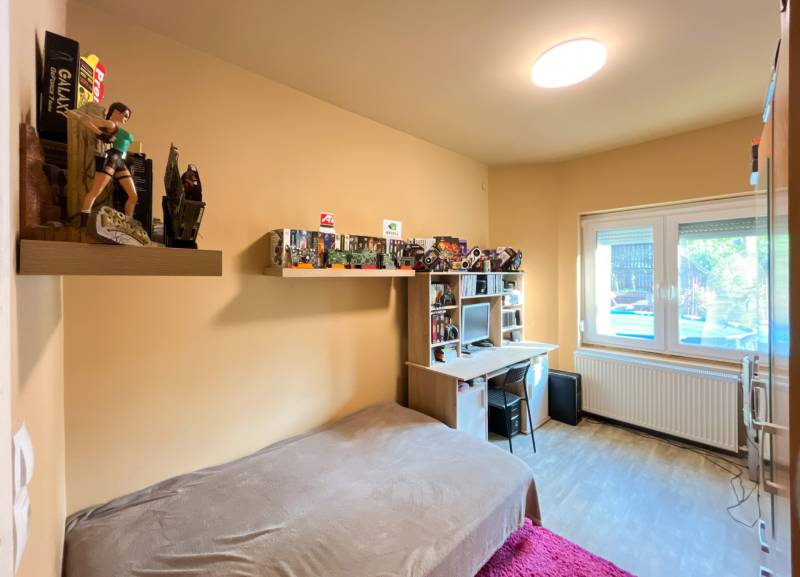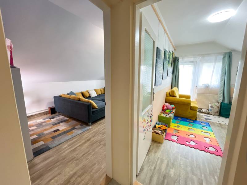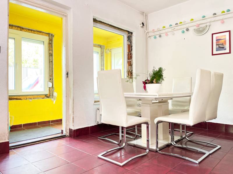 Budapest, XVIII. kerületében, Pest kertvárosában, csendes utcában eladó egy részben felújított családiház.A ház tetőtere felújított, három háló, hal, fürdőszoba kialakítású.A földszinten a nyílászárók cseréje megtörtént, esztétikai befejezésre vár.A földszinten előtér, konyha, étkező, nappali, WC, fürdőszoba, nappali és egy háló van.Minden helyiség tágas, jól élhető.További részletekért hívjon, akár most is.H505843