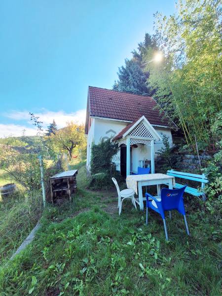 A Szent György - hegy raposkai oldalán eladó egy hangulatos, elbújós, de mégis jól megközelíthető nyaraló, rendezett tulajdoni viszonyokkal!Az ingatlanról:- Telek mérete: 2701 m2- Össz. lakóterület: 40,25 m2- Építési mód: Kő- Nyílászáró: Fa- Helyiségek: Konyha + Étkező, Pince, Lakószoba- Közművek: Villany bekötve, Víz ciszternával megoldott- Fűtés: Jelenleg olajradiátorral megoldott, de kályha is behelyezhetőTovábbi információ:Az ingatlan besorolása szőlő, rét és gazdasági épület. A telek méretének köszönhetően a beépíthetőség 3 %, 80% szőlőtelepítés mellett.Megvétel esetén kifüggesztés köteles.A telek betonozott úton jól megközelíthető. A főút zaja ide már nem hallatszik fel, az ingatlan leendő tulajdonosa élvezheti a csendet és a nyugalmat a fák és a hegy ölelésében.Amennyiben felkeltettem érdeklődését, keressen bizalommal!