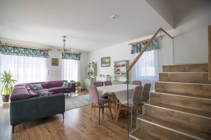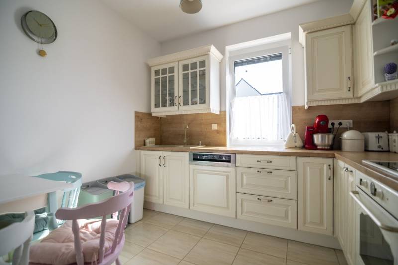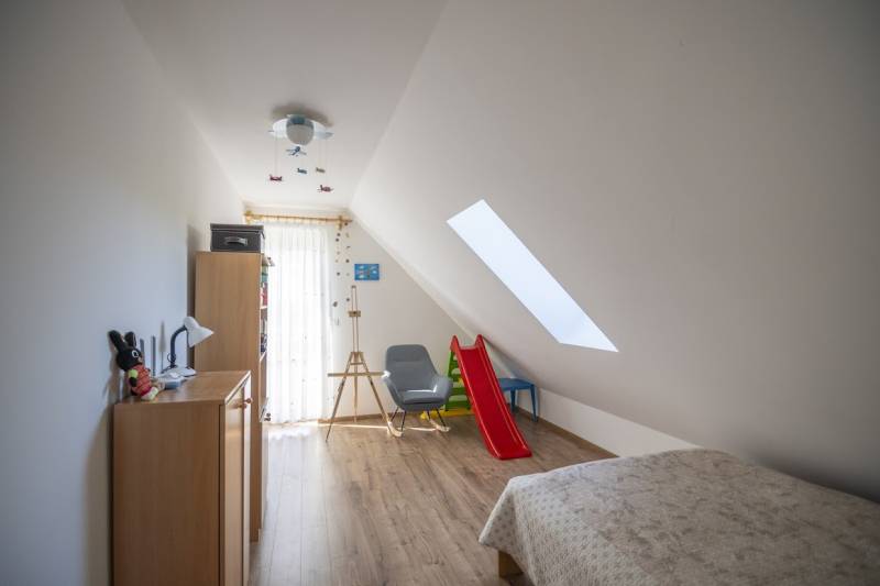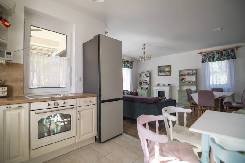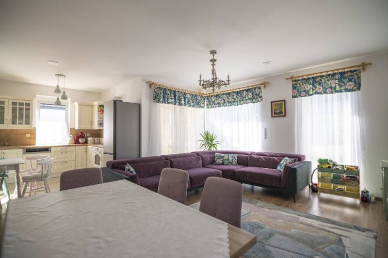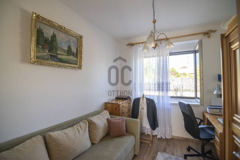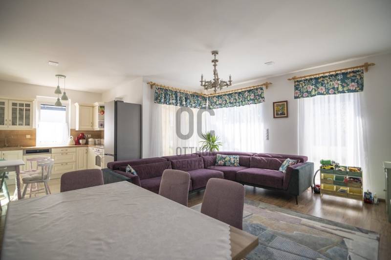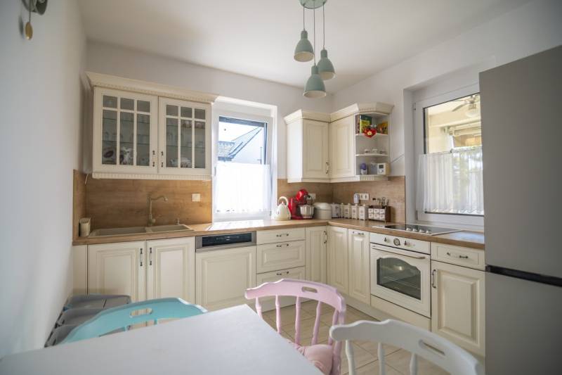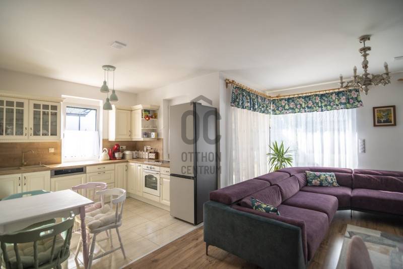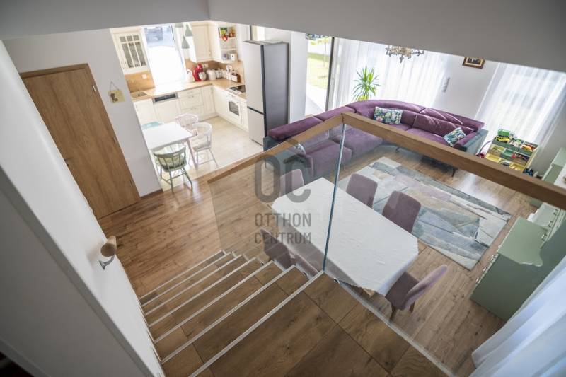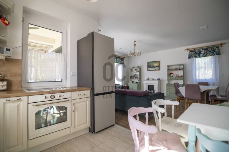 Budafok kedvelt részén, családi házas környéken, új építésű ingatlanok szomszédságában eladó egy 2023-ban épült, nettó 150 m2-es (bruttó 180 m2-es), nappali + 4 szobás ikerház-fél. Műszaki tartalom: - Energetikai tanúsítvány: A+- Napelemes tetőcserép- Hőszivattyús padlófűtés- Mennyezeti hőszivattyús fűtés- Rekuperátoros szellőztetőrendszer előkészítés- 38 cm-es Porotherm tégla falak, 10 cm-es grafitos szigeteléssel- 3 rétegű üvegezéssel rendelkező antracit műanyag nyílászárók- Elektromos alumínium redőnyök, rovarhálóval- Elektromos autótöltés előkészítés- Riasztórendszer előcsövezve- Kábel TV, internet- Prémium minőségű parketta (10 mm vastag)- Garázs, térkövezett kocsibeállóElrendezése: Földszint: - nappali (27 m2), kertkapcsolatos terasszal (7 m2)- étkező-konyha (9 m2), a nappalival egy légtérben, prémium minőségű konyhabútorral és beépített gépekkel (mosogatógép, sütő, főzőlap)- dolgozószoba (10 m2)- fürdőszoba zuhanyzóval (5,5 m2), kiváló minőségű szaniterekkel- előszoba (8 m2)- kamra (4 m2) - lépcső és lépcső alatti tároló (1 m2)- garázs (18 m2)Emelet: - 3 hálószoba (11 - 11 - 11 m2)- 2 gardrób (4,5 - 4,6 m2)- fürdőszoba káddal (7 m2)Kert: - füvesített, 8 gyömölcsfa- 100 m3 termőtalaj került elterítésre- esővíztároló- 2 db. kerti csap (teraszon és a kertben). Infrastruktúra: - Buszmegállók sétatávolságra- Óvoda, iskolák a közelben - Budafok városközpont gyorsan elérhetőVadonatúj ajánlat!További részletek és a megtekintés miatt keressen bizalommal! Hétvégén is hívhat.