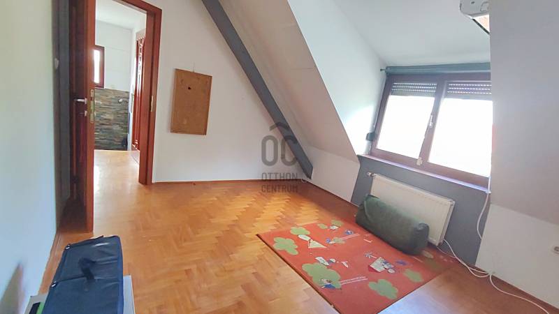 Önálló helyrajzi számú 117 m2-es hőszigetelt családi ház + 26 m2-es garzon, fedett terasszal, szaunával, kondirésszel, borospincével és fedett grillezővel, 406m2 telekkel, parkosított kert.A fedett teraszról előtérbe lépve különálló wc található. A konyha-étkezőn továbbhaladva jutunk el a lépcsőházon át a nappaliba és egy egész szobába. Nappaliból fürdő-wc nyílik. Tetőtérben egy közlekedőből nyílik 2 félszoba és egy egész szoba, valamint a padlófűtött fürdő-wc. Burkolatai jó állapotúak. Nyílászárói jó minőségű fa ablakok, hőszigetelő üvegezéssel.- A+ energetikai besorolás- napelem 6,75kWh- napkollektor+puffertartály- új kondenzációs kazán- radiátor+padlófűtés- 3 db klíma- alacsony rezsiNyugodt, kisforgalmú utca, metró, bevásárlóközpontok, óvodák és iskolák pár perc sétára. Gondozott, belátásmentes kert automata öntözőrendszerrel (ehhez külön vízóra), gépkocsi-beállóval.Kiváló választás családoknak és többgenerációs otthont keresőknek!