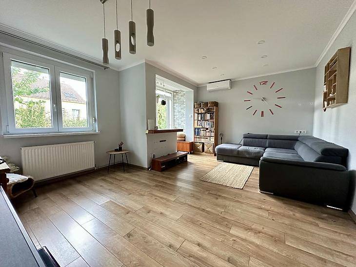 Vácon, a közkedvelt Deákvár városrész csendes, forgalomtól mentes zsákutcájában kínálunk megvételre egy magasföldszinti, felújított állapotú lakást, amely ideális választás lehet családok, párok, vagy akár befektetők számára is.A praktikus elosztású ingatlan 2+1 félszobával, külön étkezővel, konyhával, fürdőszobával, valamint különálló WC-vel rendelkezik. A közlekedőből minden helyiség külön nyílik, így a lakás rendkívül élhető és jól szeparált. A lakás része egy erkély, ahonnan kellemes kilátás nyílik a csendes környékre, valamint tartozik hozzá egy saját pincehelyiség is, ami extra tárolási lehetőséget biztosít.Északkeleti tájolásának köszönhetően a lakás egész nap világos: délelőtt az utcafronti, délután pedig a kert felőli ablakokon keresztül áramlik be a természetes fény, így a terek mindig napfényesek és otthonosak.A fűtésről kondenzációs cirkó gondoskodik, amely korszerű és energiatakarékos megoldás, valamint a nappaliban egy hűtő-fűtő klíma található. A lakás új, hőszigetelt, dupla üvegezésű nyílászárókkal felszerelt, így a komfort és az alacsony rezsi is garantált.Elhelyezkedése kiváló: a közelben iskola, buszmegálló, boltok találhatók, a vasútállomás pedig kb. 15 perc sétával elérhető – így akár autó nélkül is könnyen megoldható a mindennapi közlekedés.Amennyiben eladásra vagy hitelre lenne szüksége új ingatlanjának megvásárlásához, irodánk ingyenes értékbecslést vállal egész Vác területén, profi hitelközvetítő kollegáink pedig díjmentesen állnak rendelkezésükre.Kérdésével, illetve megtekintési szándékával keresse irodánkat.