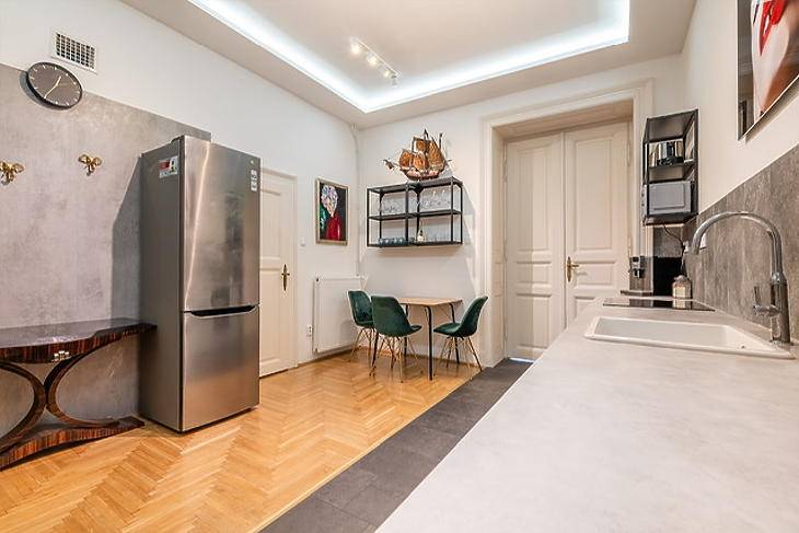 Budapest belvárosának egyik legkedveltebb utcájában, a VI. kerületi Ó utcában, eladóvá vált egy 73 négyzetméteres, 1. emeleti, kiváló állapotú lakás, amely nemcsak elhelyezkedésével, hanem elrendezésével is igazán különleges. Az ingatlan 2 tágas, világos szobával rendelkezik, amelyek egybe és külön is nyílóak – ezáltal tökéletesen alkalmazkodnak a különböző élethelyzetekhez, legyen szó otthonról, irodáról vagy vendégfogadásról. Továbbá 2 külön fürdőszoba szolgálja a lakók kényelmét, ami igazán ritka és praktikus megoldás. A lakás újszerű állapotban van, esztétikailag és műszakilag is kifogástalan. Modern burkolatok, minőségi nyílászárók, korszerű fűtésrendszer és kellemes, világos belső terek jellemzik. Az adatok tájékoztató jellegű.