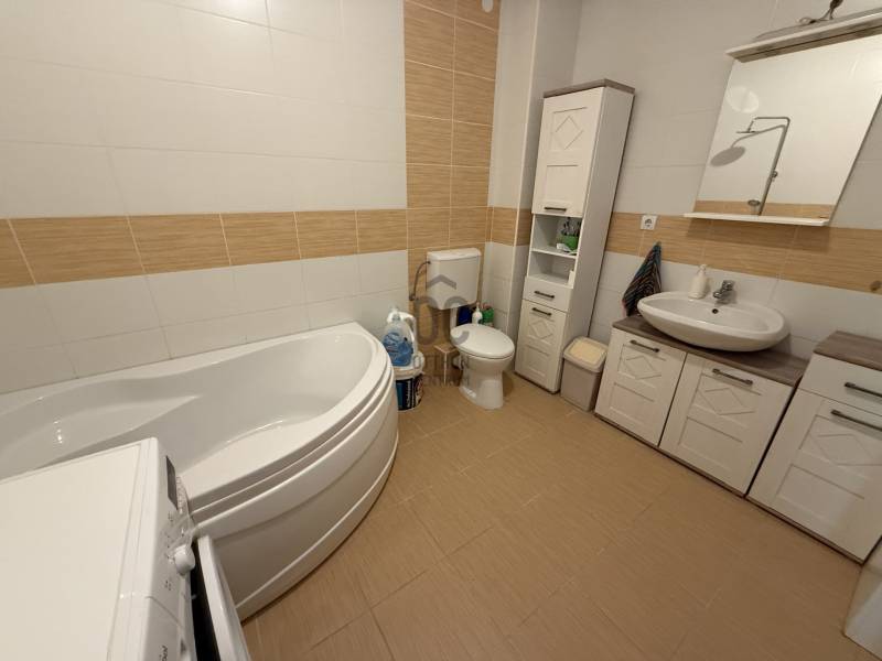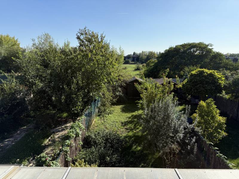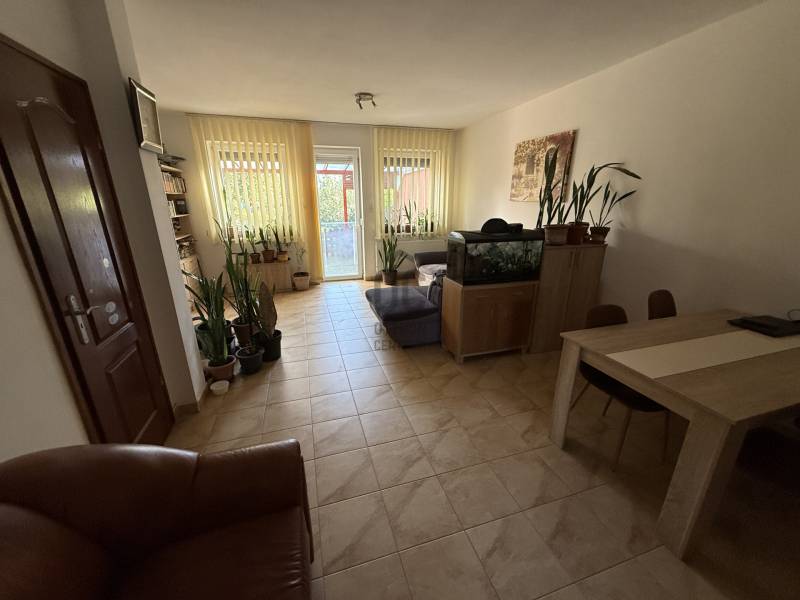 XVIII.kerület kertvárosias részén, Erzsébet-telepen épült 2012-ben az a sorház, melynek egyik lakása vált eladóvá most. Az ingatlan a tulajdoni lapja szerint társasházi lakás, így teljesen önálló a tulajdonjoga.A ház kívül-belül jó állapotú, karbantartott, így különösebb felújítást nem igényel, legfeljebb saját ízlésre kell formálni.A hő-és hangszigetelésről műanyag nyílászárók gondoskodnak, az ablakokon pedig szúnyogháló és redőny is van.Míg a földszinten padlófűtés, addig az emeleten radiátorok vannak, a melegről és a melegvízről pedig egy 3 éve cserélt kondenzációs kazán gondoskodik. Nyáron a nagy melegben viszont klíma gondoskodik a kellemesebb hőmérsékletről.A tulajdonosok az idők folyamán beépítették a tetőteret, brutto 25 m2-rel növelve a használható lakóteret, bár a ház ura ezt jelenleg irodaként használja. Mindkét szinten található WC, a fürdőszoba pedig az emeletre került. A konyha külön kapott helyet, míg a nappaliban került kialakításra az étkező és innen lehet kijutni a fedett teraszra és a kertbe is.A nappaliban az ablakokra szalagfüggöny került, míg az előszobába beépített bútor. A fürdőszobában a kád nyáron lett kicserélve.A ház előtti 25 m2-es kertrész alkalmas egy nagyobb méretű autó parkolására is. A 100 m2-es kertben öntözőrendszer működik, de mérete alapján kényelmes kerti sütögetésre vagy akár egy kerti tó is kiépíthető.A biztonságról riasztórendszer gondoskodik.Az utcában nagy játszótér, míg az utca végében óvoda, a közelben pedig iskola, orvosi rendelő, gyógyszertár és posta található.Pár perces sétával elérhető a Gyömrői út, ahol számtalan buszmegálló található.