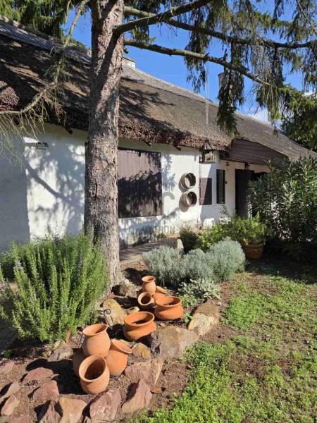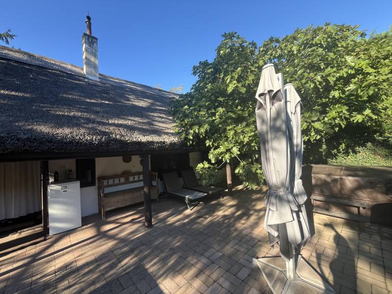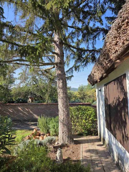 Badacsonytomaj-Badacsonyörs belterületi részén vált eladóvá ez az autentikus jegyekkel bíró, lakóházként bejegyzett ingatlan plusz telekkel, mely valamikor az 1950-es években épült és a folyamatos karbantartásnak valamint felújításoknak köszönhetően megőrizte eredeti jellegét és hangulatát is!A 3323 nm-es telek közművesített, víz, villany és csatorna is bevezetésre került, gáz az utcában található.A ház fűtéséről és hűtéséről hőszivattyús rendszer gondoskodik, a fűtést egy fatüzelésű kis kályha is kiegészíti.A ház hasznos alapterülete 65 négyzetméter, elosztását tekintve egy konyha-étkező, folyosó, 3 szoba, fürdőszoba - wc, valamint háztartási helyiség került kialakításra az épületben.A kert hátsó részében található egy hangulatos kerti tó, amit egy vörös levelű japán juharfa tesz teljessé. A telek végében egy 40 négyzetméteres alapterülettel rendelkező szaunaház került kialakításra, benne 8 személyes finn szauna, 9 kw-os kályhával, a falon egy parajdi sóképpel, zuhannyal, külső pihenővel, ahonnan a kilátás a Badacsonyra néz.A telek részén, egy modern, 30 négyzetméteres hűthető-fűthető mobilház található rajta, amely kis nyaralónak is tökéletes választás, emellett pedig helyet kapott még egy 6 személyes lakókocsi és egy régebbi, tárolóként funkcionáló, tégla épület is a telken belül, valamint egy fedett kiülő/ terasz.A kert szemet gyönyörködtető, az épület előtt kiépített teraszon helyett kapott egy jakuzzi, társalgásra alkalmas kiülő rész és sütögető helyiség.Elhelyezkedéséből adódóan a telek egésze tájpanorámás a környező tanúhegyekre. Ajánlom az ingatlant mindazok figyelmébe, akik a mindennapi nyüzsgésből kiszakadva a megérdemelt pihenést nyugodt környezetben szeretnék eltölteni távol a város zajától!Kérdés esetén, keressen bizalommal az elérhetőségek egyikén.
