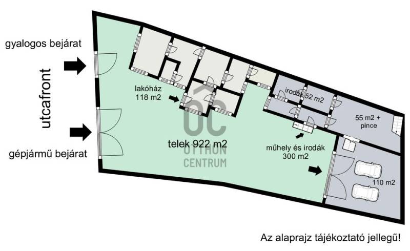 CSALÁDI HÁZ - IKERHÁZ - TÁRSASHÁZ - VÁLLALKOZÁSI TELEPHELYEladó egy különleges adottságú, több mint 400 m² összterületű ingatlan Soroksár egyik csendes, rendezett utcájában, megbízható szomszédságban.A tágas, értékes telek és a felújítandó épületek páratlan lehetőséget kínálnak befektetőknek, vállalkozóknak vagy építkezőknek, akik saját elképzelésük szerint szeretnék megvalósítani álmaikat.Ingatlan főbb jellemzői:Teljesen felújítandó főépület – szabadon alakítható kialakításJelenleg két különálló téglaépület:- 118 m2 lakóépület~300 m² autószerelő műhely (két szerelőaknával), irodák, raktárak +100 m² pinceMegnevezés: kivett lakóház, udvarMéret: 922 m²Besorolás: Lk-1-XXIII-2/2Közművek: telken belül - villany (3x16A és 3x20A) és gáz bekötve, csatorna a telkenBeépíthetőségi paraméterek:Beépítési mód: szabadonálló Max. beépíthetőség: 50%Építménymagasság: 7,5 mSzintterületi mutató: 1,5 m²/m²Zöldfelület minimum: 40%Terepszint alatti beépítés: max. 50%Kialakítható legkisebb telek: 500 m²Építhető:- családi ház- ikerház- társasház- üzlethelyiség - bemutatóterem- kereskedelmi egység- telephelyTökéletes választás azok számára, akik értéket és lehetőséget keresnek egy helyen!Amennyiben felkeltette érdeklődését, keressen bizalommal!