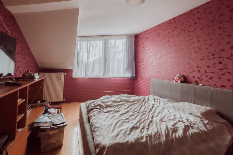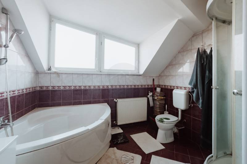 Budapest XV. kerületében, nyugodt, kertvárosi környezetben, eladó egy kétszintes, napfényes családi ház, 350 m²-es telken.Az ingatlan jellemzői:- Építés éve: 2005, 30-as Porotherm tégla, 5 cm hőszigeteléssel.- Földszint: amerikai konyhás nappali, étkező, előszoba, külön mellékhelyiség.- Emelet: három hálószoba, fürdőszoba káddal és zuhanyzóval, gardrób, mosókonyha.- Franciaerkély az egyik hálószobán.- Padlástér tárolásra.- Fedett terasz és gondozott kert, kemence és faház.- Fűtés: cirkó kazán, melegvíz: 150 literes víztároló.- Légkondicionáló a felső szinten.- Felújítások az elmúlt években: víztároló-, járólap-, laminált padlócsere, részleges fürdőszoba-felújítás.Környék és infrastruktúra:- Csendes, családbarát környezet.- Rövid sétára: bölcsőde, óvoda, iskola, gyógyszertár, állatorvosi rendelő.- Tömegközlekedés gyors eléréssel a belváros irányába.Ez az ingatlan ideális választás családoknak, akik nyugodt kertvárosi életet keresnek, de szeretnének jó infrastruktúrához és szolgáltatásokhoz közel maradni.
