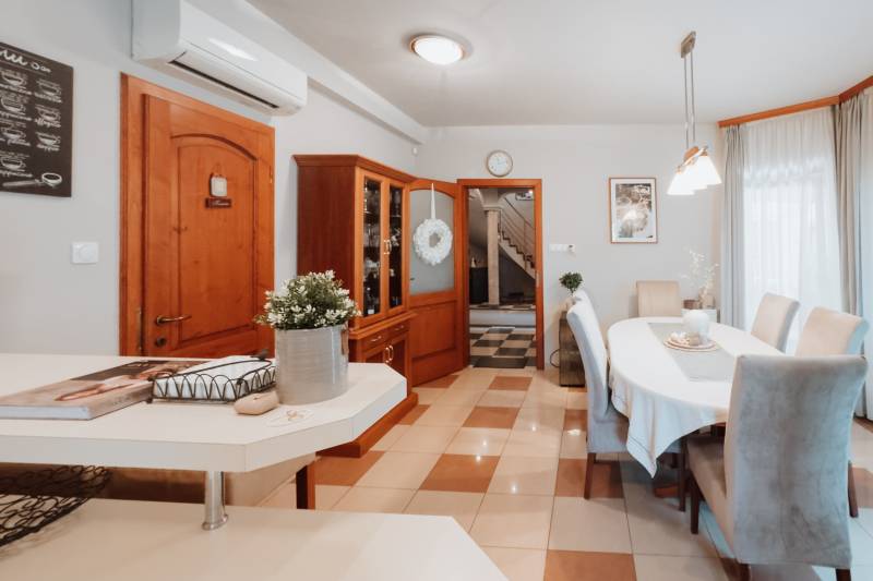 Irányáron eladó ez a Duna-part közeli álomotthon Soroksáron – családoknak, akár két generációnak is ideális!Képzelje el, hogy minden reggel madárcsicsergésre ébred, és a saját teraszán kávézva élvezheti a zöld panorámát. Most ez az álom valóra válhat Budapest XXIII. kerületének egyik legkedveltebb, mégis csendes részén – Soroksáron.Ez a 210 nm-es, újszerű állapotú családi ház egy 577 nm-es telken fekszik, és 5+1 szobájával, valamint 3 fürdőszobájával tágas és kényelmes életteret kínál nagycsaládosoknak vagy akár két generációnak is.A 35 nm-es terasz ideális helyszín lehet pihenéshez, családi ebédekhez vagy baráti összejövetelekhez.Az ingatlan részben bútorozott és gépesített, a modern kényelmet pedig napelemek, klímaberendezés és központi porszívó biztosítják – így az üzemeltetési költségek is kedvezőek maradnak.A kétszintes kialakítás, két garázs, valamint a kert végében található jakuzzi tovább növelik az otthon élhetőségét és értékét.A környék csendes, zöldövezeti jellegű, mégis remek közlekedési kapcsolatokkal rendelkezik – könnyen és gyorsan elérhető a belváros. A közelben minden megtalálható: üzletek, iskolák, óvodák, egészségügyi ellátás.A tulajdonos rugalmas, és nyitott a megállapodásra – érdemes személyesen is megtekinteni ezt a különleges lehetőséget!