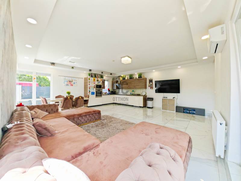 XXI. kerület legkedveltebb részén, Királyerdőben található ez a kiváló állapotú, 135 nm-es körbejárható családi ház, amely tökéletes választás lehet családosok számára. A ház jelenleg 3 hálóval+ gardróbbal rendelkezik, amely hálóvá alakítható, egy fürdőszobával és egy külön Wc-vel rendelkezik, így bőven van hely a kényelmes együttéléshez. Az amerikai konyhás nappali világos, modern és barátságos, ideális helyszín a családi összejövetelekhez, vagy baráti találkozókhoz. A prémium kivitelezésnek köszönhetően a ház minden részlete a minőséget képviseli. A minimalista kialakítás és a LED hangulatvilágítás elegáns atmoszférát teremt, míg a szúnyogháló és motoros redőnyök a kényelmet szolgálják. A nagy garázs, ill. dupla elektromos kapu gondoskodik a kényelmes autóbeállásról, mely több autónak is biztosít beállási lehetőséget.A biztonsági ajtó és a riasztórendszer gondoskodik arról, hogy családod biztonságban érezhesse magát. A tágas nappalis, rendezett kertes családi ház egy csendes, felkapott környéken helyezkedik el. Az 538 nm-es telek lehetőséget ad a szabadban való pihenésre, az automata öntözőrendszer pedig megkönnyíti a kertgondozást. A modern fűtési rendszer (gáz cirkó)padló- és radiátoros fűtés és a klíma biztosítja, hogy a ház mindig kellemes hőmérsékletű legyen, függetlenül az időjárástól. A környék kiemelkedő közlekedési lehetőségekkel rendelkezik, így a város bármely pontja könnyen elérhető. A közeli buszmegállók gyors kapcsolatot biztosítanak Budapest központjával, miközben a természet közelsége és a csendes utcák ideális környezetet teremtenek a családi élethez. Királyerdő zöldövezeti jellegének köszönhetően a friss levegő és a nyugalom mindennapi társad lesz. Képzeld el, hogy egy olyan otthonra találsz, ami nemcsak a családod kényelmét szolgálja, hanem a mindennapjaidat is feldobja! Ez az ingatlan nem csupán egy ház, hanem egy otthon, ahol a családod minden tagja megtalálhatja a számításait. Ha kérdéseid vannak, vagy szeretnéd megtekinteni ezt az exkluzív ajánlatot, bátran keress meg! Az ingatlanpiacon való tájékozódásban és a megfelelő döntések meghozatalában szívesen segítek. Ne habozz, hiszen az álomotthonod már vár rád!