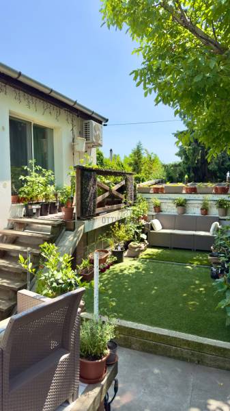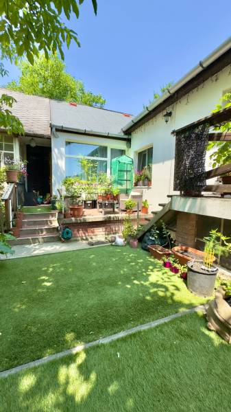 Budapest XXII. kerületében, Budafokon, az Árpád utcához közeli, csendes, családi házas övezetben eladó egy 70 m²-es ikerházfél, amelyhez saját használatú, 25 m²-es kert, valamint két külön bejáratú, összesen 40 m²-es pince és beépíthető padlás is tartozik.Az ingatlan az elmúlt évek során több ütemű felújításon esett át:•2019-ben új műanyag nyílászárók kerültek beépítésre, háromrétegű, biztonsági üvegezéssel,•2022-ben hűtő-fűtő klíma került beszerelésre,•2023-tól új kondenzációs gázkazán gondoskodik a fűtésről és a melegvíz-ellátásról, valamint elkészült a 16 cm-es Baumit külső hőszigetelés is,•2024-ben megtörtént a teljes belső festés.Az épület tégla és kő vegyes falazatú, stabil szerkezettel. A konyhához egy kis kamra is tartozik, amely praktikus tárolási lehetőséget biztosít. Az ingatlanban emellett egy fatüzelésű cserépkályha is található.A teljes épület osztatlan közös tulajdonban van, azonban ügyvédi használati megállapodás készült, amelyben a kizárólagos használati viszonyok részletesen rögzítve vannak, térképmelléklettel alátámasztva. Ennek köszönhetően a két lakás teljesen elkülönül, mind fizikailag, mind használati jog szerint.A parkolás az utcán ingyenesen biztosított.A környék kiváló infrastruktúrával rendelkezik: a közelben található óvoda, iskola, CBA, patika, játszótér, sportpálya, kutyafuttató, konditerem, szépségszalon.10–15 perces sétával elérhetők a busz- és villamosmegállók, vasútállomás, valamint házi- és szakorvosi rendelő, gyógyszertár, pékség, piac, vegyesbolt, lottózó.Ez az ingatlan ideális választás azok számára, akik Budapesten szeretnének élni, ugyanakkor fontos számukra a nyugodt, kertvárosias környezet, elérhető közelségben minden fontos szolgáltatással.Ha szeretné megtekinteni az ingatlant, vagy bármilyen kérdése felmerül kérem keressen bizalommal.Budafok, eladó ház Budafok, ikerház Budafokon, eladó ikerházfél, felújított ikerház, eladó ingatlan 22. kerület, eladó ház 22. kerület, kertvárosi ingatlan, családi házas övezet, tégla ház, ingyenes parkolás, 3 szobás ház