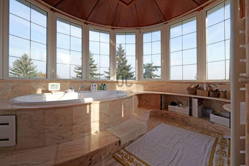 Kivételes lehetőség családosok számára, a 2/A kerület TOP ingatlana! Budapest 02/A kerületének csendes, kertvárosi részén, Adyligetben eladó egy lenyűgöző, prémium kivitelezésű, 10 hálószobás luxusvilla, amely ideális otthona lehet egy nagyobb családnak vagy akár befektetési célokra is tökéletes választás. Az ingatlan alapterülete 1194 nm, míg a telek mérete 2000 nm, így bőséges teret biztosít a kényelmes életvitelhez. Az ingatlan 2 ikerházzá is osztható igény szerint, több filmforgatás helyszíneként is ismert. További jellemzők:- fantasztikus örökpanoráma- hőszivattyú, H tarifa- luxus minőségű külső és belső burkolatok- 3 fűtött medence- 2 tágas szauna- partyszoba - külön bejáratú személyzeti lakásA ház kiváló, azonnal költözhető állapotban várja új lakóit, modern hőszivattyús fűtéssel és klímával felszerelve, hogy az év minden szakaszában kellemes hőmérsékletet biztosítson. Az ingatlan belső tereit tágas terek uralják, ideális helyszín a családi összejövetelekhez és reprezentáláshoz. Az ingatlan elegáns stílusú kialakítása, a beépített bútorok és szekrények, valamint a LED hangulatvilágítás \" old money\" eleganciát és stílust kölcsönöznek a tereknek. A házban található 10 fürdőszoba garantálja a kényelmet és a magánszférát minden családtag számára. A bentlakó személyzet a külön bejáratú, intim 75 nm es felszerelt, két szobával rendelkező lakrész kényelmét élvezheti.A lenyűgöző kertben az automata öntözőrendszer folyamatosan biztosítja a növények életerejét, az elvehetetlen panoráma pedig exkluzív látványt nyújt minden irányból. A szabadidő eltöltésére a szaunák, partyhelyiség és a jakuzzi nyújt lehetőséget, míg a kül- és beltéri medencék a nyári hónapokban garantáltan felüdítenek. A környék biztonságos és csendes, ideális a családok számára, akik a város zajától távol, mégis könnyen megközelíthető helyen keresnek otthont. Nemzetközi iskolák megtalálhatóak a környéken. A közlekedés kiváló, hiszen a közelben található tömegközlekedési lehetőségek gyors és kényelmes eljutást biztosítanak Budapest belvárosába. Az autós közlekedés is egyszerű, a főbb közlekedési útvonalak könnyen elérhetők, a városközpontba 10-15 perc alatt eljuthatunk.Ez az ingatlan nem csupán egy otthon, hanem egy életstílus megtestesítője, amely egyedi tervezésével és exkluzív megoldásaival minden igényt kielégít. A biztonsági ajtó és a riasztórendszer maximális védelmet nyújt, míg a videókaputelefon és a videós biztonsági rendszer a modern technológia kényelmét biztosítja. Amennyiben érdeklik a részletek, vagy kérdései merülnének fel ezzel az egyedülálló ingatlannal kapcsolatban, kérem, ne habozzon! Bizalommal kereshet bármilyen információval, és örömmel állok rendelkezésére, hogy segítsek Önnek megtalálni álmai otthonát.
