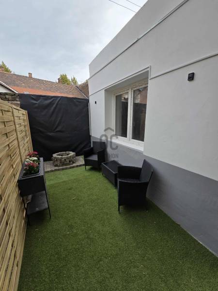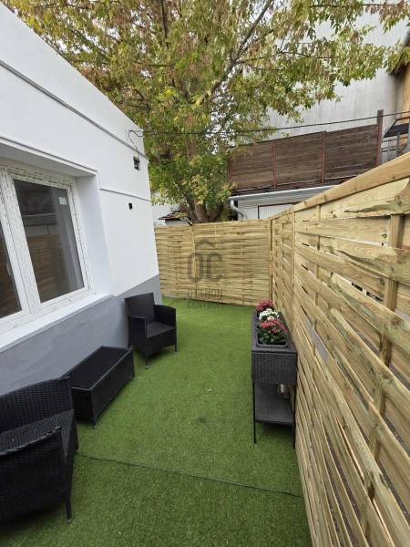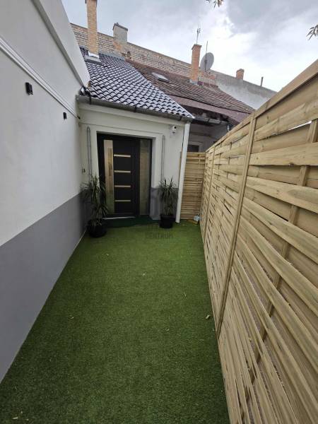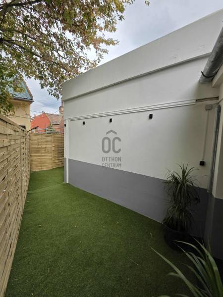 Újpest központjához közel eladóvá vált egy:- TELJES KÖRŰEN FELÚJÍTOTT (VEZETÉKEK, NYÍLÁSZÁRÓK, BURKOLATOK, TETŐ TSB.)- KERTKAPCSOLATOS (19 NM)- 69 NM ALAPTERÜLETŰ- NAPPALI + 2 HÁLÓSházrész. Az ingatlan egy csendes mellékutcában található Újpest központjához közel. Néhány perces séta távolságra elérhetők a tömegközlekedési eszközök (busz, metró, villamos), újpesti piac, boltok stb. Az ingatlan fűtéséről gázkonvektor és hűtő-fűtő klíma gondoskodik.A telken 2 épületben 3 lakóegység található, az ingatlan osztatlan közös tulajdon, ez egyes lakrészek és a hozzájuk tartozó telek kizárólagos használati jogát ügyvédi használati megállapodás rögzíti. Az épületek az ingatlannyilvántartási térképmásolaton megfelelően fel vannak tüntetve, így a tárgyi ingatlan banki finanszírozással is megvásárolható.A kertben víz vételi lehetőség van és kültéri konnektort is felszereltek. Az új tulajdonosnak lehetősége van a földszinti hálószoba feletti lapostetőn egy tetőterasz kialakítására, akár úgy, hogy a tetőtéri szobából kijáratot nyit, akár a kertből felvezető külső lépcső megépítésével. Iá.: 89,9 M Ft