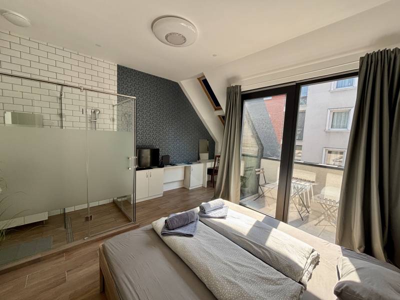 KIADÁSRA kínálom ezt a méltán közkedvelt DOB UTCÁBAN található, modern, 33 m² alapterületű, kiváló elrendezésű, napfényes, TERASZOS garzonlakást. KIVÁLÓ LEHETŐSÉG egyetemisták, illetve magyar, vagy akár külföldi egyedülállók, fiatal párok számára.Az ingatlan egy kívül-belül KORSZERŰSÍTETT, rendezett, esztétikus homlokzattal rendelkező, LIFTES társasház harmadik emeletén található, néhány évvel ezelőtt készült el ráépítéssel.A bejárati ajtón belépve az előtérbe érkezünk, ahonnan balra találjuk a gépesített, ablakos konyhát, előre továbbhaladva pedig a napfényes, stúdiólakás jellegű életteret, melyben helyet kapott egy stílusos, modern zuhanyzó. Található még itt dolgozósarok, illetve a hálótér. Innen nyílik egy utcára néző 3 m²-es terasz, melyen hangulatos városi kilátással, napfényben fogyaszthatjuk el reggeli kávénkat. Az ingatlanban a megfelelő hőmérsékletről korszerű hűtő-fűtő klíma, illetve elektromos fűtőpanel gondoskodik, a meleg megtartását pedig a modern, dupla üvegű nyílászárók szavatolják.A lakás bútorozott, gépesített állapotban azonnal költözhető.A kiváló állapotú, ízlésesen kialakított ingatlan további előnye KIEMELKEDŐ LOKÁCIÓJA. Karnyújtásnyira van az Erzsébet-körút, illetve a Király utca, így a környéken minden szükséges szolgáltatás megtalálható, legyen az üzlet, szórakozóhely, étterem, vagy hangulatos kávézó. A közlekedés gördülékenységét biztosítja a 4-es 6-os villamosvonal, több közeli metróvonal (M1,M2,M3), illetve számos autóbuszjárat (105, 107,112,5,8E) biztosítja. Frekventált elhelyezkedése ellenére az ingatlan tetőtéri mivolta nyugalmat biztosít lakóinak.Az ingatlan bérleti díja 250.000 Forint/hó. A közös költség 10.000 Forint/hó.Az ingatlan kéthavi kaucióval, illetve egyhavi bérleti díjjal azonnal költözhető. Nem dohányzó, igényes bérlők jelentkezését várjuk, kisállat nem akadály. Amennyiben ez a KIEMELKEDŐ LEHETŐSÉG felkeltette az érdeklődését, keressen bizalommal, szívesen mutatom!AUER Ingatlan