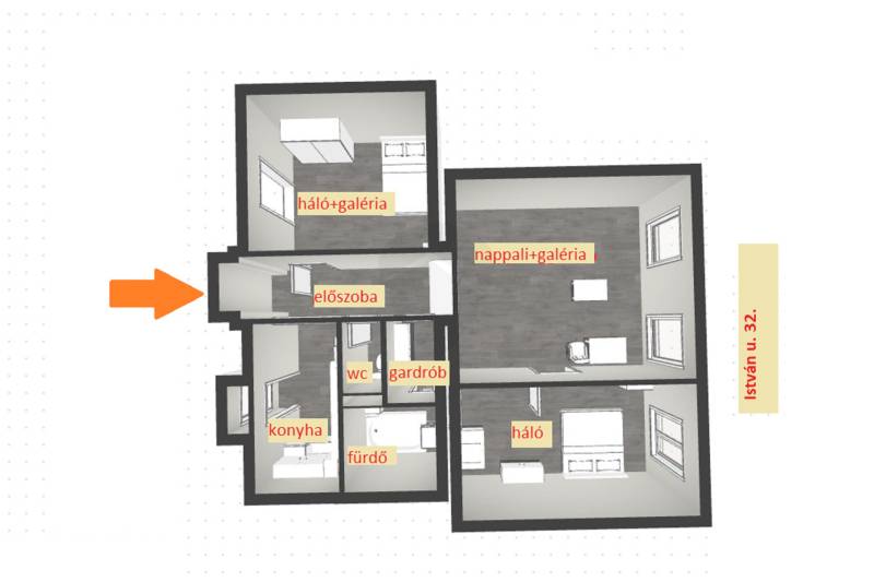 István u. 32.-ben kiadó albérlet.Az első emeleti ingatlan,3 külön nyíló szoba,konyha,fürdő,külön wc,és egy gardróbot is tartalmaz.A lakás teljes bútorzattal,gépiesítve kiadó,akár egy család részére,de akár 3 személy részére is.Gyerek-ek nem akadály. A tulajdonos kérésére kutyával,háziállattal nem költözhető.A tulajdonos 1 havi kauciót,és 1 havi bérleti díjat+1 havi rezsiköltség 74.000.-ft.(közösköltség+víz, csatorna, melegvíz+,fűtés=60.000.ft.+5.500.ft-villanyszámla+8.500.ft-internet) -ot kér.A leendő bérlők rendelkezzenek munkáltatói igazolással, és ha van az előző albérletből referenciával. Valamint vállalják, hogy a későbbiekben közjegyzői okiratba foglalják a szerződést. 574.000.-ft.-al akár már holnap költözhető.