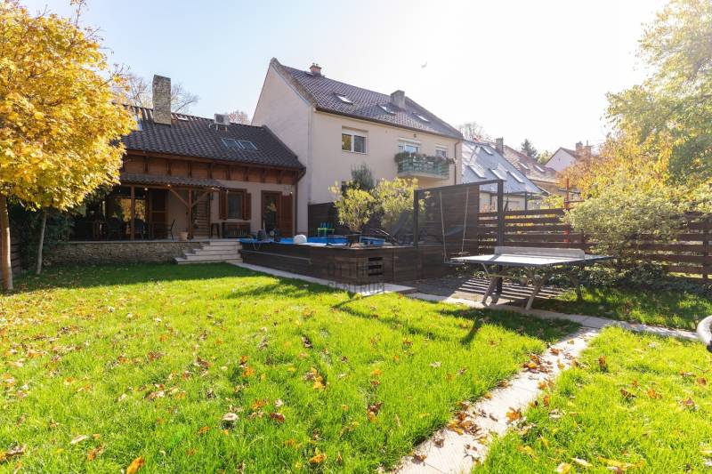 Fedezd fel álmaid otthonát Budapest XIV. kerületének csendes, de mégis pezsgő részén Zuglóban!Ez a felújított, kiváló állapotú, sorház jellegű, két szintes családi ház nem csupán egy ingatlan, hanem egy életstílus, amely ideális azok részére, akik értékelik a kényelmet és a természet közelségét. Nappali+ 5 tágas hálószobával rendelkezik, így bőséges teret biztosít a család számára, vagy akár baráti összejövetelekhez is. Két fürdőszobája garantálja, hogy reggelente senkinek sem kell várakoznia és emellett még vendég mosdó is megtalálható. A házhoz tartozik egy 403 négyzetméteres telek, amely rendezett kerttel rendelkezik. A füvesített kertben kiépített öntözőrendszer, 3x5 méteres hőszivattyúval fűthető medence, fedett sütögető rész és egy kis faház tárolónak is megtalálható. A 35 nm-es terasz tökéletes helyszín családi grillezésekhez vagy csak a napozáshoz. A prémium kivitelezés és a modern dizájn megjelenik a ház minden részletében. A kandallós nappali a téli estéken biztosítja a meghitt hangulatot. Az ingatlan fűtése gázkazán (viessmann) történik, radiátoros hőleadókkal, valamint padlófűtés is ki lett építve.Hűtése klímával, így a legforróbb nyári napokon is kellemes hőmérsékletet biztosít. A riasztó és kamera rendszer és a biztonságos környék nyugalmat ad a mindennapokhoz. Két autó számára udvari beálló áll rendelkezésre elektromos kapuval, biciklitárolóval. Fenntartása nagyon kedvező, köszönhető ez az 50 cm-es téglafalazatnak és a modern nyílászáróknak is.Az ingatlan tehermentes, így gyorsan birtokba vehető kifizetést követően.A környék kiemelkedő közlekedési lehetőségekkel rendelkezik: a kitűnő közlekedésnek köszönhetően gyorsan elérheted a belvárost. A csendes utcák és a barátságos szomszédság ideális környezetet biztosítanak az ideköltözők számára, akik szeretnék élvezni a városi élet előnyeit, miközben a természet lágy ölén pihenhetnek. Ne habozz, ha egy exkluzív, modern és családbarát otthont keresel, ami minden igényt kielégít!Várom megkeresésedet hétköznap és hétvégén is!Ez az ingatlan a \"Felező csomag\" megbízási portfólióhoz tartozik. Részletek az Otthon Centrum weboldalán.