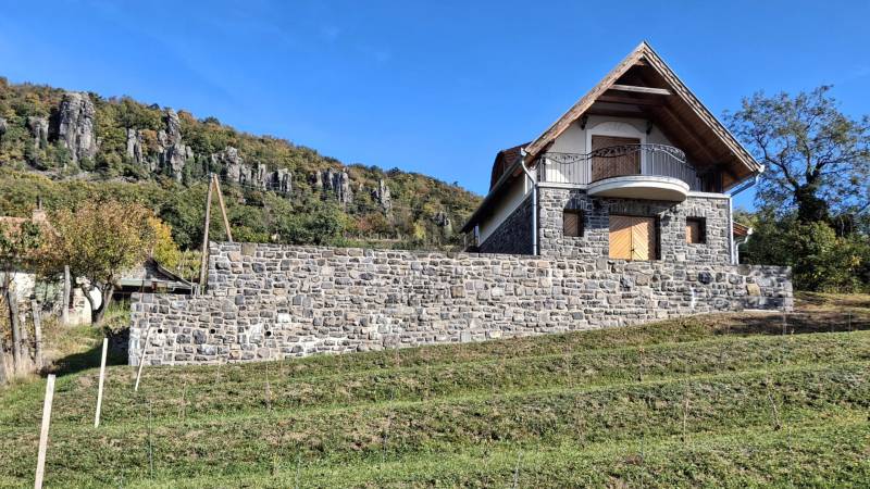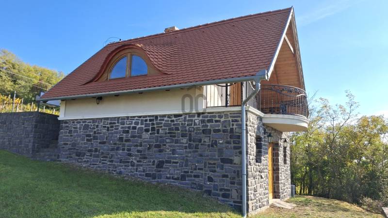 Badacsonytördemicen a Római útról megközelíthető nyaralót ajánlok figyelmébe!A hegy közepén fekvő ingatlanból gyönyörű panoráma tárul elénk a Balatonra, a hegy bazaltorgonáira és Szigligetre.Kiépített út vezet a házhoz, ahol több autó számára kialakított parkoló biztosított.KIEMELT MEGBÍZÁS, CSAK AZ OTTHON CENTRUM KÍNÁLATÁBAN!A lépcsőzetes kialakítású telek nem túl nagy mérete ( 860 m2 ) optimális, gondozása sok időt nem igényel, szőlővel betelepített.A telek minden pontjáról megcsillan a Balaton víztükre, de a ház háta mögött a hegy is pazar látképet ad.A környező pár szomszéd után pihentető sétára indulhatunk az erdőbe vagy a hegytetőre.A ház falazata tégla, bazaltkő támfalakkal kiegészülve.A tető hódfarkú héjazatot kapott, szigetelt.A pinceszinten az előtér, kamra és bortároló kialakítás külön lakrésszé változtatható.Az emeleten a nagy légterű nappali- konyha és fürdőszoba befejezésre vár.A nyílászárók fenyőből készültek, dió lazúrral.A villany bekötésre került, a szennyvízhez az emésztő biztosított.Víz jelenleg nincsen, ciszternával vagy kútfúrással megoldható.Gazdasági épület, kifüggesztés köteles.A Badacsony a Tapolcai- medence legmagasabb, ikonikus hegye.A szőlőtermesztésről, borozóiról híres, kedvelt üdülőhely.A közelben több strand és étterem várja a vendégeket.Ha kérdése merült fel vagy szeretne időpontot egyeztetni, várom megtisztelő hívását!