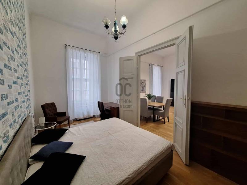 Kiadásra kínálok egy felújított, igényesen berendezett és teljesen gépesített, 2. emeleti, utcai lakást a Király utcában, a körúthoz közel.Az ingatlan 86 m², nappali + 2 külön nyíló hálószobával és 2 fürdőszobában rendelkezik.Fűtés: gázkonvektoros, a kisebb háló és a fürdőszoba elektromos panellel fűthetőKözös költség: tartalmazza a korlátlan vízfogyasztástDohányzás: kizárólag a külön kijelölt, szeparált kis teraszon engedélyezettKisállat: nem megengedettA lakás azonnal költözhető, kéthavi kaució és az aktuális havi bérleti díj megfizetése után.Egyedi igényekre szabott lakáshitelekkel állunk rendelkezésére.Bankfüggetlen Hitelcentrumunk az országban elérhető összes bank és hitelintézet ajánlatát versenyezteti az Ön számára díjmentesen.Munkatársaink nagy szakmai tapasztalattal, teljes körű CSOK PLUSZ és OTTHON START PROGRAM ügyintézéssel várják Önt előre egyeztetett időpontban akár a normál munkaidő után is.