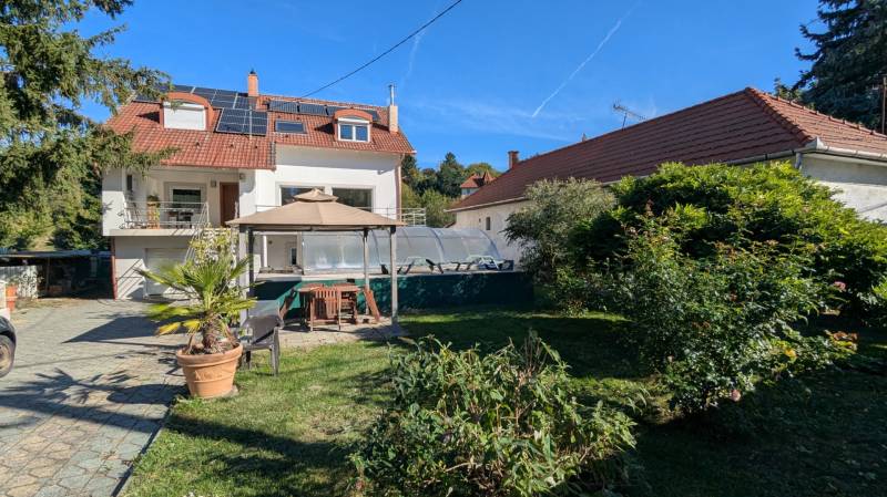 Ez az ingatlan a kényelem és a praktikusság tökéletes egyensúlyát kínálja: tágas terek, átgondolt kialakítás és számos extra várja új tulajdonosát.A 350 m²-es főépülethez egy 30 m²-es műhely-garázs, 25 m²-es fedett terasz és 12 m²-es napozóterasz kapcsolódik, így a teljes beépített terület meghaladja a 400 m²-t. Tágas elrendezése révén két generáció számára is kényelmes otthon, de vállalkozás működtetésére is alkalmas.A 950 m²-es, rendezett saroktelek zárt lemezkerítéssel, térburkolt udvarral és kiváló megközelíthetőséggel rendelkezik. A játszótér az utca túloldalán, a horgásztó mindössze 50 méterre található – ideális választás családoknak és természetkedvelőknek egyaránt.A főépület 350 m², amelyhez 30 m² műhely-garázs, 25 m² fedett terasz és 12 m² napozóterasz kapcsolódik. A teljes beépített terület meghaladja a 400 m²-t, így a terek kényelmesen kiszolgálnak akár két generációt is.Az épület extrái kívül:- Teljesen zárt lemezkerítés, amely takarja az ingatlant- 170 m² térburkolat (udvar, járda és épület körül)- Fedett fürdőmedence (25 m²)- Napozóterasz (12 m²)- Kerti kút locsoláshoz- 40 m² rozsdamentes korlát- Külső lépcsőház a tetőtérhez, kovácsoltvas kapuval- 30 m² műhely-garázs betonozott résszel- Napelemrendszer (6 kW) – akár 6 évig szaldó elszámolással- Beépített grillező- Jakuzzi, fedett fürdőrész- Minimum 4 autó parkolási lehetőségAz épület extrái belül:- Hőcserélős szellőztető rendszer- Egyedileg gyártott, prémium belső ajtók- Kandalló- Minőségi burkolatok- Beépített bútorokA környék:- Buszmegálló: 300 méter- Óvoda: 200 méter- Bevásárlás, gyógyszertár: 600 méter- Iskola, középiskola: 800 méter- Uszoda, francia iskola, focipályák: 700 méterEz az ingatlan tökéletes választás többgenerációs családoknak, valamint azoknak, akik otthonuk mellé vállalkozást vagy irodát is szeretnének kialakítani. A minőségi kivitelezés, a korszerű megoldások és a remek elhelyezkedés mind hozzájárulnak ahhoz, hogy ez a ház valóban egyedülálló otthont kínáljon hosszú távra.