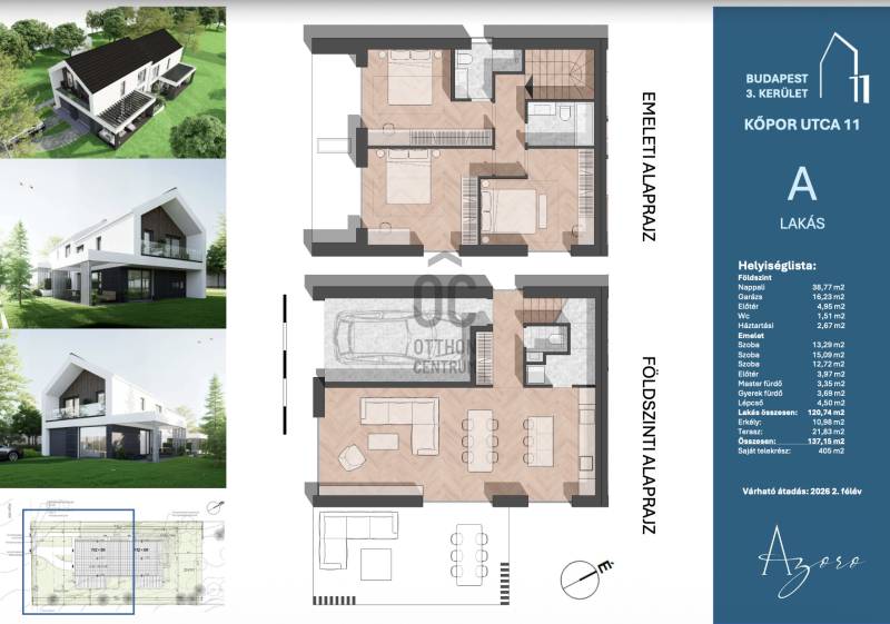 Eladó, Minőségi alapanyagokkal épülő, Lakás:119,20 + Erkély/Terasz:32,41 m²-es, 5 szobás, 2 fürdőszobás, Ikerház 751 m²-es telekkel.FONTOSABB TUDNIVALÓK A LAKÁSRÓL:- Újépítésű, minőségi alapanyagok felhasználásával,- Modern tervezéssel és kivitelezéssel készül,- Praktikus elrendezéssel és helykihasználással,- Korszerű, alacsony hőátbocsátási tényezővel tervezett,- Világos szobákkal, zöldre néző hőszigetelt ablakokkal,- Motoros mozgatású redőnyökkel,- 270 cm belmagassággal és rendkívül kedvező életterekkel,- Hőszivattyús fűtés-hűtés rendszerrel felszerelt.FONTOSABB TUDNIVALÓK A HÁZRÓL:- Nagytelkes terület, összesen 1623 m²,- Az épület homlokzata modern, a környezetbe illő, minimalista homlokzat,- A lakások száma az épületben 2db,- Parkosított tágas udvarrésszel és kertkapcsolattal,- Kültéri épület és udvarrész világítással felszerelt,- Az épület Napelemes előkészítéssel rendelkezik.Az Ürömhegyi lejtő rendkívül csendes, családi házas környék Budapest III. kerületében, ahol a közlekedés, egészségügyi ellátás, oktatási intézmények és szolgáltatások könnyen elérhetők, főként a közeli Bécsi út és Aranyhegyi terület révén. Az Ürömhegyi lejtő tehát megfelelő infrastruktúrával, könnyen elérhető szolgáltatásokkal és jó közlekedési kapcsolatokkal rendelkezik, ideális választás családosok és elvonulásra vágyók számára.A környék szolgáltatásai, gyalogos vagy néhány perces közlekedési távolságra:KÖZLEKEDÉS: Tömegközlekedéssel a 160-as, 943-as, valamint a 960-as buszjáratok érintik a környéket, így a belváros és Óbuda felé is jó a közlekedési kapcsolat. A (260 és 219) is közlekedik a Harsánylejtő/Aranyhegy lakóterület felé. A környék főbb útvonala a Bécsi út, amely gyorsan elérhető autóval és tömegközlekedéssel is. A járatok hétköznap reggel és délután sűrűbben, egyéb időszakban ritkábban közlekednek.GYÓGYSZERTÁRAK: A Harsánylejtő Gyógyszertár a Bécsi út 314. alatt, 0-24 órás nyitvatartással várja az érdeklődőket. Ingyenes utcai parkolás, akciók és kiterjedt szolgáltatáskínálat jellemzi. Bankkártyás fizetés lehetséges, külön gyógyászati és állatgyógyászati termékek is elérhetők.EGÉSZSÉGÜGYI SZOLGÁLTATÁS: A III. kerületben található Szent Margit kórház, illetve több járóbeteg-szakrendelő biztosítja a lakosság számára az alap- és szakorvosi ellátást. A Csillaghegyi Közösségi Házban sószoba is működik, ami légzőszervi és allergiás problémákra jelent jó megoldást, kizárólag III. kerületi lakosok számára, előzetes bejelentkezéssel. Szociális ápoló-gondozó szolgáltatások is elérhetőek a környéken.OKTATÁSI INTÉZMÉNYEK ÉS GYERMEKINTÉZMÉNYEK: Óvodák és általános iskolák elsősorban a III. kerület központibb részein találhatók, átlagosan a kerületi óvodások és iskolások 10%-a nem helyi lakos. Az Aranyhegy-Ürömhegy-Péterhegy szegregátum mikroregionális oktatási vonzással bír, tehát a környéken több gyermekintézmény is hozzáférhető.ÉLELMISZERBOLTOK ÉS EGYÉB SZOLGÁLTATÁSOK: Nagyobb boltok, bevásárlóközpontok a Bécsi út mentén vagy annak közvetlen közelében találhatók, így az Üröhegyi lejtőről gyorsan elérhetők. A környéken különféle további szolgáltatások, például szabadidős, sport- és kulturális létesítmények, illetve sószoba is igénybe vehető a Csillaghegyi közösségi házban.KEDVEZŐ LAKÁSHITEL (jelentős volumenben helyezünk ki hiteleket): EGYEDI IGÉNYEKRE SZABOTT LAKÁSHITELEKKEL állunk rendelkezésére. BANKFÜGGETLEN hitelcentrumunk az országban elérhető ÖSSZES BANK ÉS HITELINTÉZET ajánlatát VERSENYEZTETI az Ön számára díjmentesen. MUNKATÁRSAINK nagy szakmai tapasztalattal várják Önt az előre egyeztetett időpontban akár a normál munkaidő után is.Projekt bemutatásaV Á L L A L T M Ű S Z A K I T A R T A L O MA megvalósuló lakóingatlanfejlesztés tervezésekor kiemelt figyelem övezi nem csak az átgondolt térkapcsolatokat és a jól használható helyiségeket, hanem a beépítendő anyagokat is. Törekszünk a legjobb ár/érték arány elérésére, a modern megjelenésre, a korszerű műszaki megoldásokra és arra, hogy a ház használója olyan anyagokkal és megoldásokkal találkozzon nap mint nap, aminek látványa és érintése méltó a megbecsülésre, és örömöt szerez a mindennapokban. Ennek megfelelően a nem látható szerkezetek elsődleges szempontja a magas műszaki elvárások mellett a tartósság, értékállóság, a látható, érezhető, tapintható anyagok esetén pedig figyelünk a felületekre, esztétikára is.ÉPÍTÉSZET: ALAPOZÁS: statikailag méretezett vasbeton sáv- vagy lemezalap. FÖDÉMEK: monolit vasbeton födémszerkezet az építési tervdokumentáció statikai terve szerint úsztatott padló rétegrenddel, akusztikailag megfelelő vastagságban. TEHERHORDÓ FALAZAT: vázkerámia falazóblokk vagy pórusbeton falazóelem, pinceszinten zsalukő. VÁLASZFALAK: fürdőszobák és egyéb belső lakóhelyiségek falazata 10 cm NF égetett tégla vakolva, tárolók és alárendelt helyiségek pórusbeton, égetett kerámia vagy gipszkarton. TETŐSZERKEZET:magastető esetén: fa szerkezetű tető a szarufák között szigeteléssel kitöltve, gipszkarton belső borítással, az építési tervdokumentáció szerint, lapostető esetén: vasbeton szerkezet víz- és hőszigetelve. ÉPÜLET KÜLSŐ HŐSZIGETELÉS: hőtechnikailag méretezett EPS szigetelés mechanikai rögzítéssel és hálóval ragasztva, 1,5 mm szemcsenagyságú kapart hőszigetelő nemesvakolat.NYÍLÁSZÁRÓK: ABLAKOK: korszerű, alacsony hőátbocsátási tényezőjű (U=0,75 W/m2K, Uf=0,79W/m2K), 7 légkamrás, 3 rétegű üvegezéssel ellátott műanyag nyílászárók kívül a hom