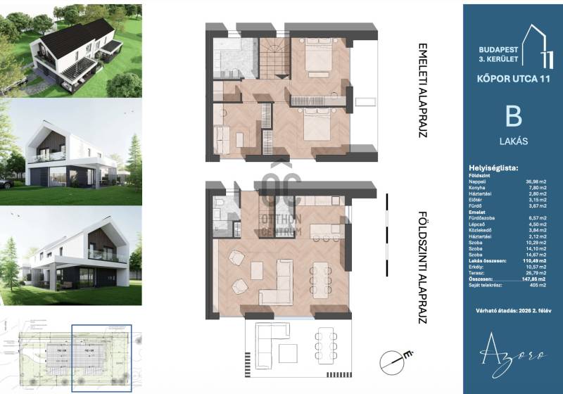 Eladó, Minőségi alapanyagokkal épülő, Lakás:107,78 + Erkély/Terasz: 37,36 m²-es, 5 szobás, 2 fürdőszobás, Ikerház 751 m²-es telekkel.FONTOSABB TUDNIVALÓK A LAKÁSRÓL:- Újépítésű, minőségi alapanyagok felhasználásával,- Modern tervezéssel és kivitelezéssel készül,- Praktikus elrendezéssel és helykihasználással,- Korszerű, alacsony hőátbocsátási tényezővel tervezett,- Világos szobákkal, zöldre néző hőszigetelt ablakokkal,- Motoros mozgatású redőnyökkel,- 270 cm belmagassággal és rendkívül kedvező életterekkel,- Hőszivattyús fűtés-hűtés rendszerrel felszerelt.FONTOSABB TUDNIVALÓK A HÁZRÓL:- Nagytelkes terület, összesen 1623 m²,- Az épület homlokzata modern, a környezetbe illő, minimalista homlokzat,- A lakások száma az épületben 2db,- Parkosított tágas udvarrésszel és kertkapcsolattal,- Kültéri épület és udvarrész világítással felszerelt,- Az épület Napelemes előkészítéssel rendelkezik.Az Ürömhegyi lejtő rendkívül csendes, családi házas környék Budapest III. kerületében, ahol a közlekedés, egészségügyi ellátás, oktatási intézmények és szolgáltatások könnyen elérhetők, főként a közeli Bécsi út és Aranyhegyi terület révén. Az Ürömhegyi lejtő tehát megfelelő infrastruktúrával, könnyen elérhető szolgáltatásokkal és jó közlekedési kapcsolatokkal rendelkezik, ideális választás családosok és elvonulásra vágyók számára.A környék szolgáltatásai, gyalogos vagy néhány perces közlekedési távolságra:KÖZLEKEDÉS: Tömegközlekedéssel a 160-as, 943-as, valamint a 960-as buszjáratok érintik a környéket, így a belváros és Óbuda felé is jó a közlekedési kapcsolat. A (260 és 219) is közlekedik a Harsánylejtő/Aranyhegy lakóterület felé. A környék főbb útvonala a Bécsi út, amely gyorsan elérhető autóval és tömegközlekedéssel is. A járatok hétköznap reggel és délután sűrűbben, egyéb időszakban ritkábban közlekednek.GYÓGYSZERTÁRAK: A Harsánylejtő Gyógyszertár a Bécsi út 314. alatt, 0-24 órás nyitvatartással várja az érdeklődőket. Ingyenes utcai parkolás, akciók és kiterjedt szolgáltatáskínálat jellemzi. Bankkártyás fizetés lehetséges, külön gyógyászati és állatgyógyászati termékek is elérhetők.EGÉSZSÉGÜGYI SZOLGÁLTATÁS: A III. kerületben található Szent Margit kórház, illetve több járóbeteg-szakrendelő biztosítja a lakosság számára az alap- és szakorvosi ellátást. A Csillaghegyi Közösségi Házban sószoba is működik, ami légzőszervi és allergiás problémákra jelent jó megoldást, kizárólag III. kerületi lakosok számára, előzetes bejelentkezéssel. Szociális ápoló-gondozó szolgáltatások is elérhetőek a környéken.OKTATÁSI INTÉZMÉNYEK ÉS GYERMEKINTÉZMÉNYEK: Óvodák és általános iskolák elsősorban a III. kerület központibb részein találhatók, átlagosan a kerületi óvodások és iskolások 10%-a nem helyi lakos. Az Aranyhegy-Ürömhegy-Péterhegy szegregátum mikroregionális oktatási vonzással bír, tehát a környéken több gyermekintézmény is hozzáférhető.ÉLELMISZERBOLTOK ÉS EGYÉB SZOLGÁLTATÁSOK: Nagyobb boltok, bevásárlóközpontok a Bécsi út mentén vagy annak közvetlen közelében találhatók, így az Üröhegyi lejtőről gyorsan elérhetők. A környéken különféle további szolgáltatások, például szabadidős, sport- és kulturális létesítmények, illetve sószoba is igénybe vehető a Csillaghegyi közösségi házban.KEDVEZŐ LAKÁSHITEL (jelentős volumenben helyezünk ki hiteleket): EGYEDI IGÉNYEKRE SZABOTT LAKÁSHITELEKKEL állunk rendelkezésére. BANKFÜGGETLEN hitelcentrumunk az országban elérhető ÖSSZES BANK ÉS HITELINTÉZET ajánlatát VERSENYEZTETI az Ön számára díjmentesen. MUNKATÁRSAINK nagy szakmai tapasztalattal várják Önt az előre egyeztetett időpontban akár a normál munkaidő után is.Projekt bemutatásaV Á L L A L T M Ű S Z A K I T A R T A L O MA megvalósuló lakóingatlanfejlesztés tervezésekor kiemelt figyelem övezi nem csak az átgondolt térkapcsolatokat és a jól használható helyiségeket, hanem a beépítendő anyagokat is. Törekszünk a legjobb ár/érték arány elérésére, a modern megjelenésre, a korszerű műszaki megoldásokra és arra, hogy a ház használója olyan anyagokkal és megoldásokkal találkozzon nap mint nap, aminek látványa és érintése méltó a megbecsülésre, és örömöt szerez a mindennapokban. Ennek megfelelően a nem látható szerkezetek elsődleges szempontja a magas műszaki elvárások mellett a tartósság, értékállóság, a látható, érezhető, tapintható anyagok esetén pedig figyelünk a felületekre, esztétikára is.ÉPÍTÉSZET: ALAPOZÁS: statikailag méretezett vasbeton sáv- vagy lemezalap. FÖDÉMEK: monolit vasbeton födémszerkezet az építési tervdokumentáció statikai terve szerint úsztatott padló rétegrenddel, akusztikailag megfelelő vastagságban. TEHERHORDÓ FALAZAT: vázkerámia falazóblokk vagy pórusbeton falazóelem, pinceszinten zsalukő. VÁLASZFALAK: fürdőszobák és egyéb belső lakóhelyiségek falazata 10 cm NF égetett tégla vakolva, tárolók és alárendelt helyiségek pórusbeton, égetett kerámia vagy gipszkarton. TETŐSZERKEZET:magastető esetén: fa szerkezetű tető a szarufák között szigeteléssel kitöltve, gipszkarton belső borítással, az építési tervdokumentáció szerint, lapostető esetén: vasbeton szerkezet víz- és hőszigetelve. ÉPÜLET KÜLSŐ HŐSZIGETELÉS: hőtechnikailag méretezett EPS szigetelés mechanikai rögzítéssel és hálóval ragasztva, 1,5 mm szemcsenagyságú kapart hőszigetelő nemesvakolat.NYÍLÁSZÁRÓK: ABLAKOK: korszerű, alacsony hőátbocsátási tényezőjű (U=0,75 W/m2K, Uf=0,79W/m2K), 7 légkamrás, 3 rétegű üvegezéssel ellátott műanyag nyílászárók kívül a ho