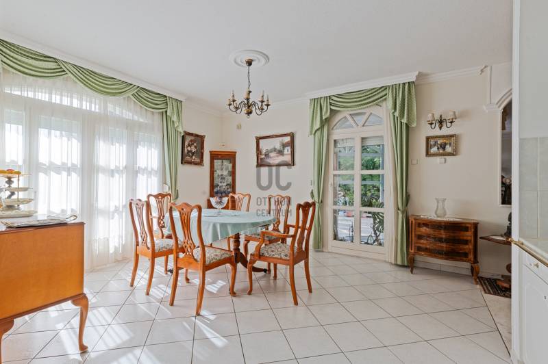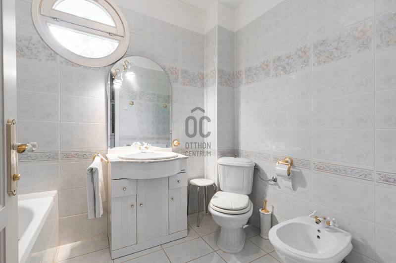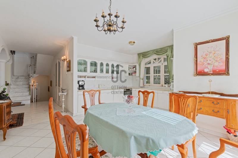 Fedezze fel ezt a rendkívüli adottságokkal rendelkező, összesen több mint 370 m²-es családi villát, amely a nyugalom és kényelem szigetét kínálja, miközben néhány perc alatt elérhető a főváros minden fontos pontja.A tágas belső terek, az igényes anyaghasználat és a modern technikai megoldások együttesen biztosítják az elegáns, mégis otthonos életérzést.Főbb paraméterek:Alagsor összesen: 138,69 m²garázs: 30 m²3 tároló, szauna, zuhanyzógépészet és hulladéktárolóFöldszint összesen: 174,60 m²nappali, étkező, konyhaszoba: 41,22 m²fürdőszoba, WCközlekedő, tárolóhelyiségekEmeleti szint összesen: 120,48 m²3 külön nyíló hálószoba (40,5 m² | 22,87 m² | 21,87 m²)2 fürdőszoba és WC2 teraszExtrák, amelyek emelik az ingatlan presztízsét: saját szauna és kandallóautomata öntözőrendszermotoros kert- és garázskapumotoros redőnyökúj, hőszivattyús fűtési rendszerhűtő-fűtő klímariasztórendszer és kamerás megfigyelésElhelyezkedésAz ingatlan különlegessége, hogy autóval és tömegközlekedéssel is könnyedén megközelíthető. A közelben minden megtalálható, ami a mindennapi kényelemhez szükséges: óvoda, iskola (magyar, angol, francia, waldorf), bevásárlóközpont, éttermek, uszoda, sportolási lehetőségek.A Széll Kálmán tér mindössze fél órán belül elérhető.AjánlásEz a villa ideális választás mindazoknak, akik Budapest központjához közel, mégis a természet ölelésében, magas presztízsű környezetben szeretnék megtervezni családjuk jövőjét.Kiváló befektetés is, hiszen az ingatlan iroda, rendelő vagy akár elegáns céges központ céljára is tökéletesen alkalmas.Megtekintéséhez időpont egyeztetés szükséges.Keressen bizalommal telefonon – gyorsan reagálok megkeresésére!Ez az ingatlan a \"Hűség csomag\" megbízási portfólióhoz tartozik. Részletek az Otthon Centrum weboldalán.