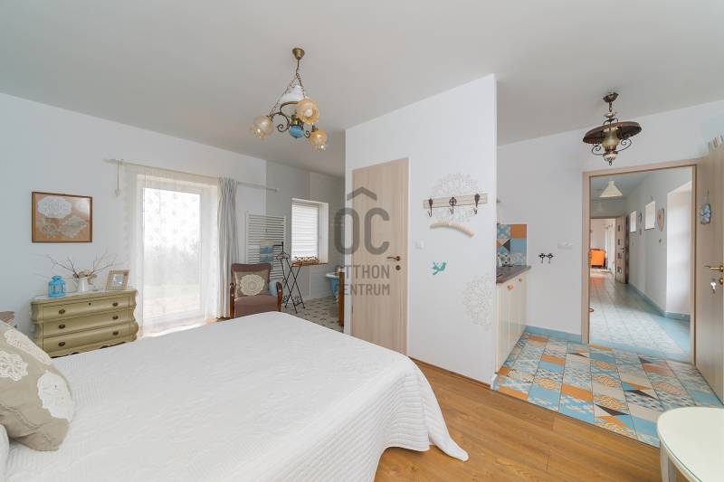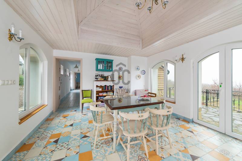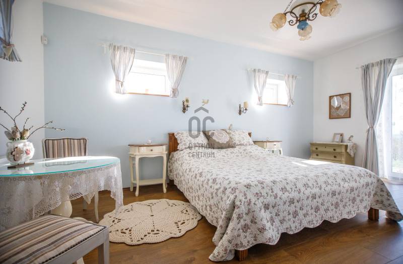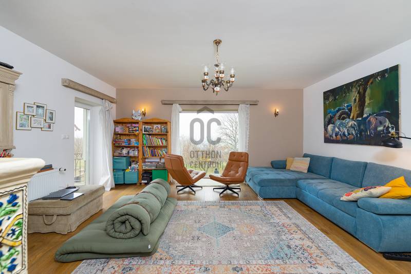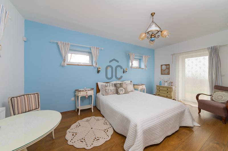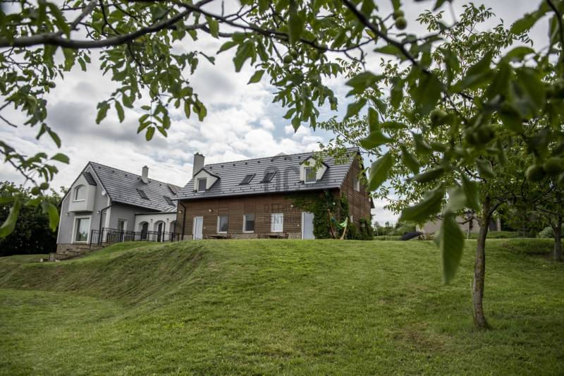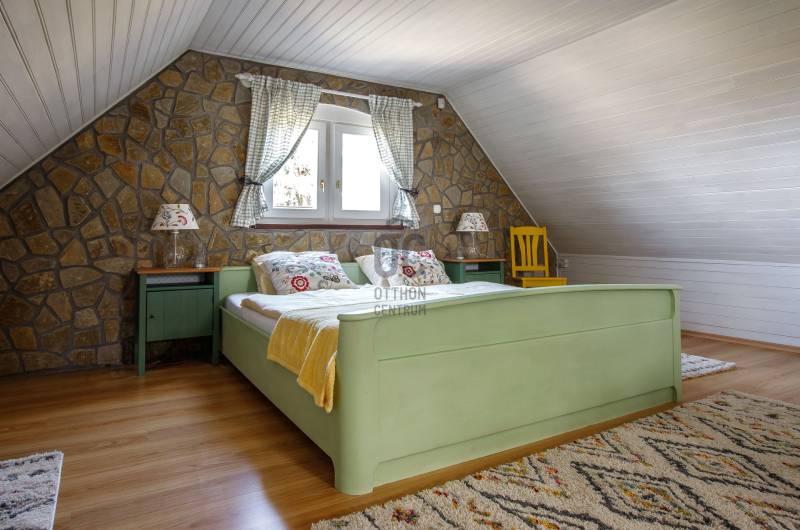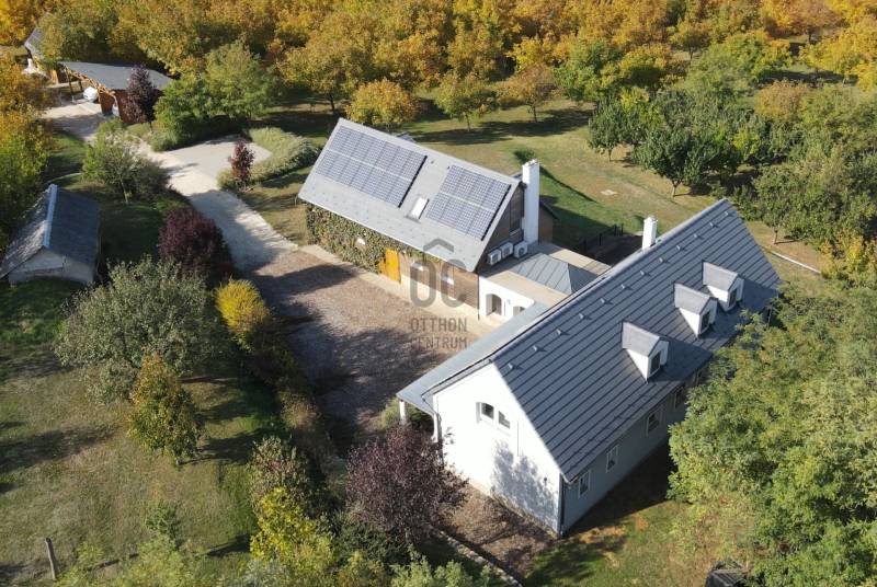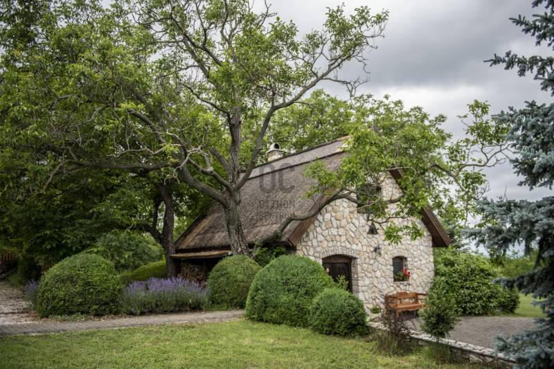 Lovasberényben, a falu Szőlőhegyén kínálok egy csodálatos birtokot, egy minden igényt kielégítő családi házzal, és 8 egyedi szálláshellyel.Rendezett, élhető településen, példa értékű oktatással (2 óvoda, művészeti református iskola) kiváló infrastruktúrával (Székesfehérvár: 20km /20perc, Budapest: 50km/45perc) és turisztikai vonzerővel (Velencei -tó, Velencei- és Vértes-hegység).Az első tulajdonosok már 20 éve elkezdték a komoly munkát, több mint 10 telek összevonásával és rendbe tételével létrehozták a birtok magját, kialakítottak 2 mesébe illő mézeskalács házikót, elültettek 170 diófát. Jelenlegi tulajdonosai pedig folyamatosan fejlesztették, szépítgették, új növényekkel, épületekkel gazdagították, melynek eredményeképp kialakult a birtok mostani arca:- 3,75 hektáros körbekerített terület, 6 Hrsz-on- 2014-ben épített hőszigetelt tégla lakóingatlan, melynek össz nettó alapterülete 366 m2 (Fsz+Tetőtér+Télikert+Pince). Ebből a saját lakórész: Amerikai konyhás nappali, plusz 5 hálószoba, 2 fürdőszoba, háztartási helyiség. Panoráma ablakok, cserépkályha teszik nagyon egyedivé és hangulatossá. A vendégrészben: 4 darab saját fürdőszobás apartman. Elektromos és vegyes tüzelésű kazán, melyeket egy nagy méretű puffer tartály egészít ki, plusz légkondik.- 2 különálló apartman-ház, saját terasszal- 2 lombház- mind a 8 szálláshely konyhával és fürdővel felszerelt, nagyrészt klimatizált apartmanok és vendégszobák, teljes felszereléssel- a szálláshelyek a birtokon belül elszórtan, de jól megközelíthetően helyezkednek el-Több gazdasági épület (összesen: 240m2) és boros pince (összesen: 40m2)-14 Kwh napelem, mely a terület áramellátását és fűtését biztosítja.-Több fő áram és vízmérő óra (220V és 380V áram, bővített hálózati kapacitással)-Elektromos autó töltő pont, 3 fázis, 3*32A-350 m2 térkövezet felület- Infra szauna- Terméskőből kirakott grillező és szalonna sütő helyek- Két pergola, 15m2 és 55m2-Gyönyörű panoráma, 240fokban a Vértes-Gerecse-Pilis-Budai hegységre-Minősített Bio Gazdálkodás-300 db termő Diófa-Termő vegyes gyümölcsös (60db), öntöző rendszerrel.-Több, mint 400 díszfával, örökzöldekkel, bokrokkal kialakított arborétumszerű környezet. Különböző juharok, hársok, tölgyek, bükk, szelíd gesztenyék, fenyők, kőrisek, platán, nyírfák, díszgalagonya, szilek, ginko, csörgő és ostor fák, fügék, ribizli, vadszeder, vadszőlő, babérmegy, buxus, korall berkenye, japán birs, levendula, zöld terülő boróka, kékszakáll, futó rózsa stb.-Kisebb akácerdő, kb 700fa-8m3-es esővíztároló és öntöző rendszer-A terület karbantartásához és gondozásához szükséges, összes kertigép, traktor, és szerszám a vételár részét képzi-Az egész terület térfigyelő kamerákkal és riasztó rendszerrel felszereltMegközelíthetőség aszfaltozott úton, a falutól 5perc autó távolságra.A birtok 2018-ban Magyarország Legszebb Birtoka díj győztese a Családi gazdálkodás kategóriában