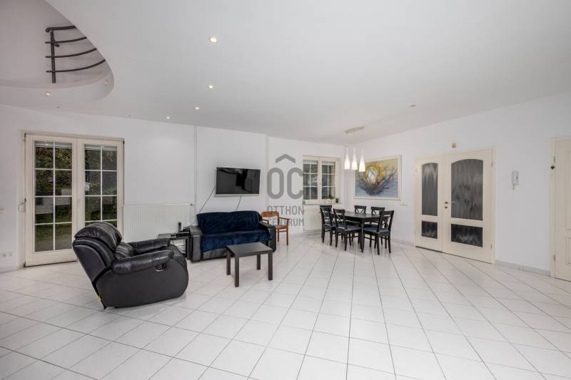 Ez a netto 294,3 m²-es, háromszintes családi ház tágas tereivel, 1000 m²-es telken tökéletes választás azoknak, akik nyugodt környezetben keresnek otthont!A ház szigetelt (15 cm Dryvit rendszer), riasztóval és automata öntözőrendszerrel felszerelt, valamint korszerű, nagy teljesítményű kondenzációs kazán (2 éve cserélve) és 295 literes melegvíztároló gondoskodik a gazdaságos üzemeltetésről.A nappaliban kandalló kialakítására is van lehetőség, a kémény már elő van készítve.Elrendezés:Garázsszint:Garázs 2 autó számáraNyitott beálló további 2-3 parkolóhellyelMosókonyhaZuhanyzós fürdőszoba WC-velKamraKét tágas tárolóhelyiségAkár edzőterem, médiaszoba is kialakítható.Földszint:ElőszobaKonyha + kamra teraszkapcsolattalTágas nappali–étkező teraszkapcsolattalHálószoba teraszkapcsolattalGardróbVendég-WC kézmosóvalFürdőszoba (WC, bidé, kád és zuhanyzó)Emelet:Két különálló hálószobaKét gardróbszobaKét fürdőszoba WC-velVilágos, tágas előtér, ahol emeleti nappali, valamint dolgozósarok is kialakíthatóTelek és környezet:1000 m²-es rendezett telek, automata öntözőrendszerrelCsendes, zöld környezetPanorámás kilátás Intim kertMűszaki adatok:Nettó alapterület: 294,3 m²Telek: 1000 m²Fűtés: kondenzációs kazán + melegvíztároló (295 l)Szigetelés: 15 cm DryvitRiasztórendszerAutomata öntözőKörnyék:A ház a III. kerület egyik legkedveltebb részén található.A közelben több óvoda, iskola és bolt is elérhető:Óbudai Vackor ÓvodaZipernowsky Károly Általános IskolaBritish International School Budapest (autóval 10 perc)SPAR, Lidl, Rossmann pár perces távolságraGOBUDA Mall (autóval 5 perc)Tömegközlekedés: 160, 260-as buszSzentlélek tér HÉV kb. 10 perc alatt elérhetőMiért különleges ez az ingatlan?A tágas belső terek, a panoráma és a nyugodt környezet garantálják, hogy minden nap öröm legyen hazatérni!Bővebb információért, megtekintési időpontért vegye fel velem a kapcsolatot.Hívását a hét bármely napján örömmel fogadom.