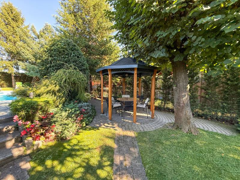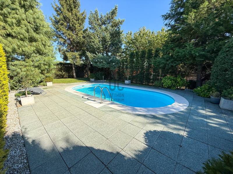 XVI. kerületi luxus családi ház eladó – wellness, medence, varázslatos kert és kompromisszummentes eleganciaVan otthon, és van az a hely, ahol az élet minden napja ünnep.Cinkota zöldövezetének szívében most egy álom válik valóra: ez a 224 m²-es, prémium minőségben megépített családi ház nem csupán ingatlan, hanem életstílus. Egy 868 m²-es parkosított kert ölelésében található, ahol a szabadság érzése és a természet harmóniája veszi körül.A modern technológia és a fenntartható luxus itt kéz a kézben jár. A ház 6 kW-os napelemrendszerrel, grafitos szigeteléssel és hűtő-fűtő klímákkal gondoskodik arról, hogy az alacsony rezsi a kényelem része legyen – nem kompromisszum.A tér, ahol minden részlet tökéletesKét nappali, négy hálószoba, gardrób és dolgozószoba teszik teljessé a belső tereket. Három elegáns fürdőszoba, két külön garázs, fedett autóbeálló és beépített tetőtér teszik praktikussá és sokoldalúvá az otthont – akár kétgenerációs megoldásként is.A wellness részleg finn szaunával és masszázskáddal vár, a fedett, hűthető-fűthető terasz pedig egész évben élvezhető. Kint a gondosan tervezett kert igazi menedék:fűthető medence napozóterasszal,dísztó különleges halakkal,kerti sütögető, szaletli és hintaágy a meghitt pillanatokhoz.Az automata öntözőrendszer, a kerti világítás és a gondosan elrendezett térkőburkolat mind-mind a gondtalan életet szolgálják.Modern, biztonságos, beköltözésre készRiasztórendszer, elektromos kapuk, kamerák és a 3x20 A-s villamos hálózat biztosítják a nyugalmat. Az új tető, korszerű nyílászárók és prémium felújítási megoldások garantálják, hogy Önnek már csak beköltöznie kell – hiszen ez az otthon két héten belül birtokba vehető.Lokáció, ami mindenhez közel vanBuszmegállók, HÉV, M0-ás, óvoda, iskola, bevásárlás – minden elérhető, miközben a környék kertvárosi békéje megmarad.Ha Ön olyan otthont keres, ahol a luxus a kényelemmel, a természet a technológiával, a csend pedig a városi kényelemmel találkozik – ez az ingatlan Önre vár.