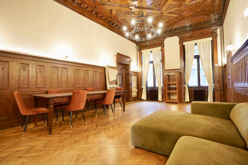 Kiadó ritka lehetőség a Belgrád rakparton. Azonnal birtokba vehető, 117 m²-es, teljesen bútorozott, nagypolgári társasházi lakás kiadó Budapest szívében, közvetlenül a Duna partján, páratlan panorámával és kiváló elhelyezkedéssel.Prémium jellemzők és exkluzív dekor:-Teljesen bútorozott, prémium minőségű enteriőr-Modern, gépesített konyha-Exkluzív dekor elemek, például elegáns csillár és cserépkályha,falikút,intarziás fa díszítő elemek-Tágas, világos terek, nagypolgári stílusbanFőbb adatok: -Méret: 117 m² (nettó és bruttó)-Szobák száma: 3-Állapot: jó, azonnal birtokba vehető-Belmagasság: 430 cm-Építés éve: 1920-Fűtés: gáz (cirko)-Elhelyezkedés: Duna part, Erzsébet híd lábánál, prémium, központi-Közös költség: 55 926 Ft/hó, korlátlan vízfogyasztással-Bérleti díj: 1 800 EUR / hó -Kaució: 3 hónapKiemelt előnyök:-Prémium elhelyezkedés a Duna partján, Erzsébet híd lábánál-Kiváló közlekedés és infrastruktúra-Hosszú távra kiadó (min 1 év), ideális üzleti célokra, például ügyvédi irodának, magán orvosi rendelőnek, vagy más exkluzív, professzionális tevékenységre-3 havi kaució, a bérleti díj euróban fizethető, a tulajdonos cég aki ÁFA-mentes számlát is ad-Kisállat nem hozható, illetve a dohányzás nem megengedettEz a lakás tökéletes választás azok számára, akik a Duna-parti életstílust, a nagypolgári eleganciát és a prémium bútorzatot szeretnék ötvözni professzionális, üzleti célú működéssel.
