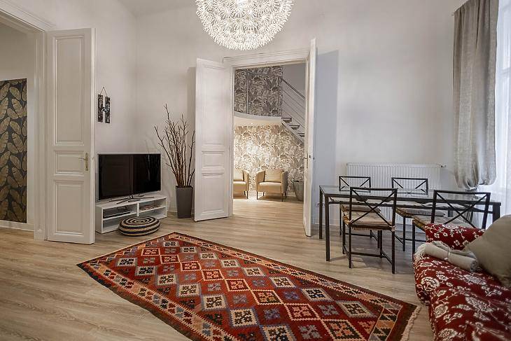Hosszútávra kiadó egy gyönyörűen felújított, stílusos, nagy belmagasságú lakás a belváros egyik legkedveltebb részén, a Nagymező utca 41. szám alatt. A lakás modern kényelmet és egyedi, otthonos hangulatot kínál: igényes burkolatok, dekoratív tapéták, látványos lámpák és minőségi bútorok teszik különlegessé.A tágas nappali étkezővel és nagy ablakokkal vár, amelyhez egy hangulatos galériás háló, valamint egy különálló, teljes értékű hálószoba kapcsolódik. A teljesen felszerelt konyhában sütő, főzőlap, mosogatógép, nagy hűtő, mikrohullámú sütő és mosógép is rendelkezésre áll. Két modern, zuhanyzós fürdőszoba biztosít kényelmet több fő számára is. A lakás légkondicionált, és január 5-től költözhető.A Nagymező utca kiváló elhelyezkedésének köszönhetően minden könnyen elérhető. A környéken számtalan étterem, kávézó, bolt, színház és kulturális helyszín található. A közlekedés kimagaslóan jó: néhány perc sétára van az M1-es metró, több villamos (4-6, 47-49), valamint számos buszjárat, így a város bármely pontja gyorsan megközelíthető. A Nyugati pályaudvar és az Oktogon is percek alatt elérhető gyalog.Költözés feltétele: 2 havi bérleti díj + 2 havi közös költség (ez a kaució) valamint tárgyhavi lakbér megfizetéseA lakás ideális választás pároknak, dolgozó fiataloknak, aki szeretne hosszútávon egy igényes, hangulatos, teljesen berendezett otthonban élni Budapest szívében.