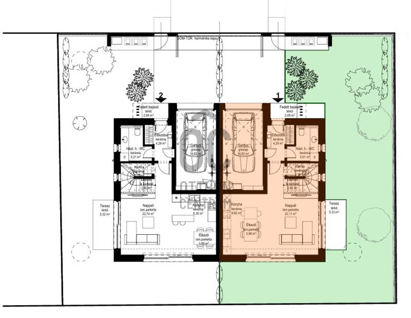 Exkluzív lehetőség azok számára, akik minőségi, XXI. századi otthont keresnek a belvároshoz közel, mégis egy nyugodt, családias környezetben. A csendes mellékutcában elhelyezkedő, prémium műszaki tartalommal rendelkező ikerház minden igényt kielégít – a modern életstílus jegyében.Kiemelkedő adottságok és átgondolt tervezésAz ingatlan a legmodernebb műszaki elvárások szerint készül, kiváló minőségű anyagok és prémium gépészeti megoldások alkalmazásával. A telek adottságai maximálisan kihasználásra kerültek, így egy esztétikus, funkcionális és hosszú távon értékálló családi otthon születik.A hasznos alapterület 122 m², két szinten:Földszint:- Tágas, 33 m²-es amerikai konyhás nappali, közvetlen teraszkapcsolattal és kerttel- Zuhanyzó + WC- Háztartási helyiség- Nagyméretű, fedett garázs – akár nagyobb autó számára is ideálisEmelet- 3 kényelmes hálószoba- 2 modern fürdőszobaA házhoz tartozó 231 m²-es privát kert igazi oázis, mely teljes intimitást biztosít, így tökéletes lehet családoknak, pihenéshez vagy akár kertészkedéshez is.A vételár tartalmazza:- Beépített, gépesített konyhabútor- Teljes kertépítés- Beépített gardróbszekrényekPrémium műszaki tartalom- 30 cm Porotherm főfalak- 3 rétegű, hőszigetelt műanyag nyílászárók- Monolit vasbeton födém- Terrán Zenit Max Carbon tetőcserép- 15 cm homlokzati hőszigetelés, korszerű energetikai besorolással- Hőszivattyús rendszer, mennyezeti fűtés-hűtés- Minőségi burkolatok, térkövezett udvarExtrák, amelyek valódi kényelmet adnak- Okosotthon rendszer- Elektromos redőnyök- Kamera- és riasztórendszer előkészítés- Videókaputelefon- Elektromos kapu- Öntözőrendszer- Elektromos autótöltő kiépítése- WPC kerítés-Rejtett- és udvarvilágítás- Légtechnika- Teljes digitális átláthatóság az építkezés soránA PlanRadar rendszernek köszönhetően Ön:- Valós időben követheti az építkezés minden lépését- Kéthetente részletes, fotókkal ellátott jelentést kap- A projekt végén minden dokumentumot digitálisan átvehet egy biztonságos felületenFinanszírozásAz ingatlan hitelre is megvásárolható, ügyfeleink számára díjmentes hitelügyintézéssel, minden hazai bank kínálatából.Állami támogatások is igénybe vehetők!Várható átadás: 2026. III. negyedévNe maradjon le!Ilyen színvonalú, modern és biztonságos otthon ritkán kerül a piacra. Kiváló választás családoknak, pároknak és mindenkinek, aki igényes, hosszú távon értékálló ingatlant keres.Forduljon hozzám bizalommal a hét bármely napján!