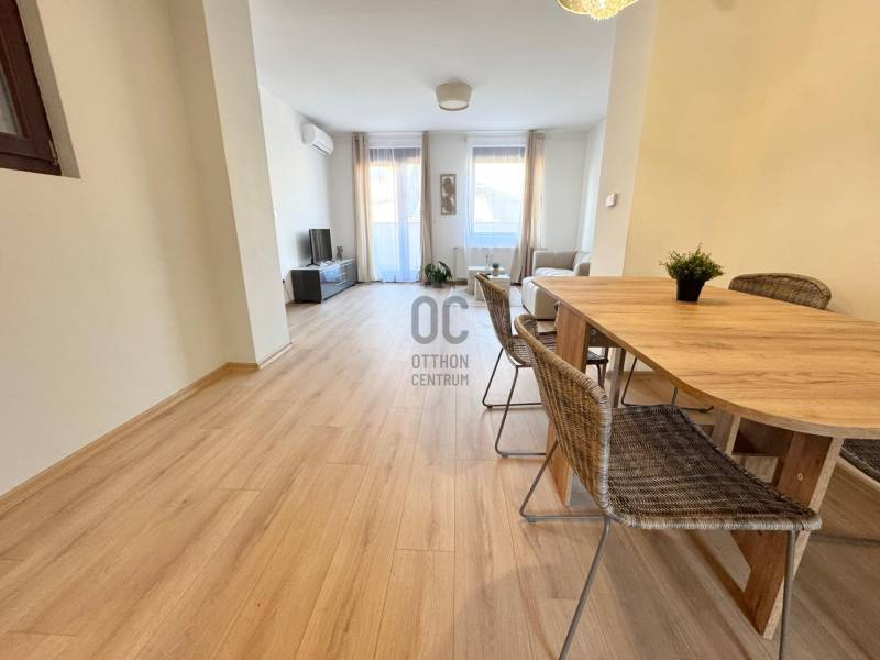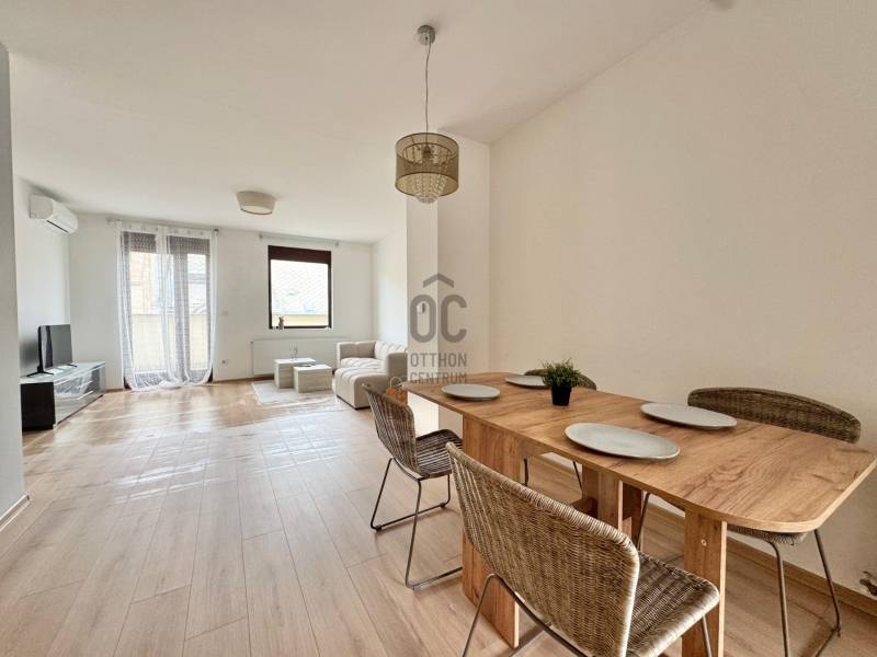 Modern nappali+2 hálós, 2-fürdős lakás kiadó a város felett, nagy terasszal.Kiváló közlekedési lehetőségek érhetők el. Metró, villamos, trolik, buszok.Az épület szépen felújított. A lakás 78 nm-es, és 18 nm-es terasza van. A közös költség 41.700,-Ft, vízzel. A gáz- és villanyfogyasztás közvetlenül a szolgáltatónak fizetendő.2 havi kaució szükséges (ha kisállat is van, akkor 3 havi).