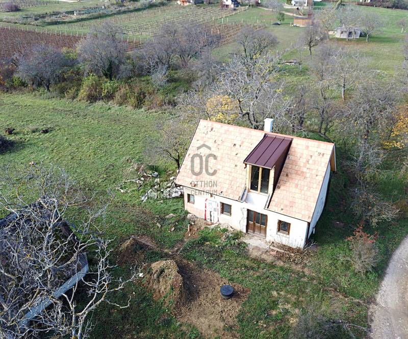 Eladásra kínálom ezt a közigazgatásilag Zánkához tartozó, de a festői Tagyon-hegy dűlőben található, részben felújított volt présházat. A 1642 nm-es telek csendes környezetben terül el, amely ideális otthont vagy nyaralót biztosíthat új tulajdonosának. Az 52 nm hasznos alapterület mellett, egy 32 nm-es pince is a ház részét képezi, amely bőven szolgálhat tárolónak, vagy akár borospincének.Az épület tégla szerkezetű, új, 2 rétegű fa nyílászárókkal, szigetelt tetővel. A vezetékes víz és 3*20 Amperes áramellátás is megoldott, egy új 5 m3-es zárt emésztő is került a föld alá. Fűtése, akár kandallóval elektromos fűtőpanelekkel vagy elektromos kazánnal is megoldható, melynek a lehetősége már előkészítve.A terület télen-nyáron végig beton úton megközelíthető és még balatoni panorámában is gyönyörködhetünk.Az épület várja befejezését, van lehetőség, hogy az új tulajdonos elképzelései szerint valósítsa meg álmai otthonát. A telek két helyrajzi számon fekszik, jelenleg nem bővíthető, de egy további, oldalsó szomszédos telekrész külön megegyezés tárgya lehet. Ez esetben a három telek összevonható és amennyiben 80%-ban szőlővel lesz telepítve, lehetőség nyílik a bővítésre is.Amennyiben további kérdése merül fel az ingatlannal kapcsolatban vagy szeretné azt megtekinteni kérem keressen a következő elérhetőségeken egyikén!