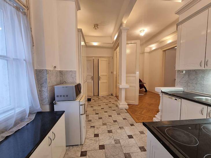 Budapest belvárosának egyik legexkluzívabb utcájában, az Aranykéz utcában kínálunk bérbeadásra egy 93 m²-es, kifinomult stílusú, klimatizált, gépesített és részben bútorozott lakást. A tágas, napfényes terek elegáns kialakítással kapcsolódnak egymáshoz: a nappali, a hálószoba, a praktikus félszoba, az étkező és a fürdőszoba harmonikus egységet alkotnak, így az ingatlan családok számára is kényelmes életteret biztosít. A közös költség havonta 35 000 Ft, a rezsi pedig átlagosan kb. 20 000 Ft normál használat mellett.A lakás azonnal költözhető két havi kaució és egy havi bérleti díj megfizetésével. Minimum egyéves bérleti szerződés kötése szükséges, amely közjegyzői okiratban kerül rögzítésre; ennek költségét a felek fele-fele arányban viselik.A környék kiemelkedő adottságokkal rendelkezik: a Váci utca elegáns üzletei, a Duna-part hangulatos sétányai, valamint a belváros éttermei és kávézói mind pár perc sétával elérhetők. Az utcák rendezettek, biztonságosak, a környezet pedig egyszerre nyüzsgő és mégis nyugodt. A közlekedés kiváló: a Ferenciek tere és a Deák Ferenc tér metróvonalai (M1, M2, M3), valamint számos busz- és villamosjárat gyors kapcsolatot biztosít a város bármely pontja felé.Ez az ingatlan ideális választás mindazok számára, akik igényes, presztízsértékű és különleges elhelyezkedésű otthont keresnek Budapest szívében.