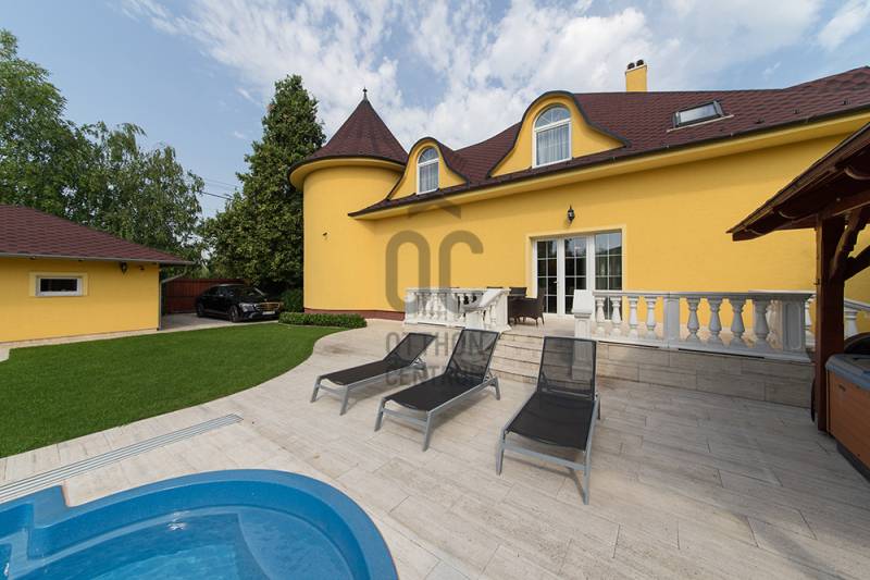 Az ingatlan bemutató videó anyaggal rendelkezik, kérésére szívesen eljuttatom a bemutató linket, az Ön számára…Eladásra kínálok a XVI. kerület frekventált, luxus kivitelezésű családi házas részén, egy 937 nm-es, buja, zöld növényekkel kerített, intim telken található, nettó 379 nm. alapterületű, 7 szobás, belső két szintes, LUXUS kivitelezésű, teljes körűen felújított, világos, nagy terekkel rendelkező családi házat.•Parkosított - öntöző és csepegtető rendszerrel ellátott - belső és külső kert•Kúria jellegű, családi ház•4 db terasz (20 nm, 18 nm, 14 nm, 4 nm)•2 db garázs (24 nm, 30 nm)•További, nyílt színi autóbeállási lehetőség•50 m3-es kerámia medence •1,7 m. víz mélység, áramoltató berendezés, fűthető, megvilágítható, fedhető medence…•Kerti fedett jakuzzi, tusolóval•Kerti, tágas grillház…•A kert határokig terjedő, profi internet kapcsolat•Külső-belső kamerarendszer…•Mozgás és nyitásérzékelő riasztórendszer…•Márvány burkolatok•Ólomkristály csillárok•Felső szinttel összenyitott nappali•Minden helyiségben Daikin, inverteres klíma berendezés…•Gépesített konyha, étkező kapcsolattal.•Kitűnő közlekedési és infrastrukturális adottságok…A képek magukért beszélnek. Sorolhatnám még az érveket, de jöjjön és keressen Ön érveket magának, hogy miért lesz ez a luxus ingatlan, az új Otthona!Higgye el, ezt Önnek is érdemes megtekintenie….!