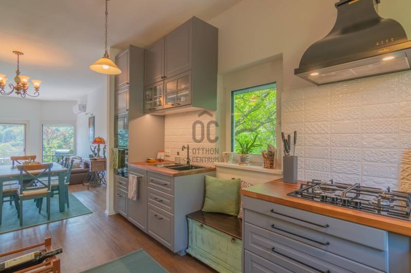 Budapesten Adorján közben eladó egy 210 m2-es, 6 szobás, 3 fürdőszobás, IKERHÁZ csendes utcában, 780 m2-es telken. A ház 3 szintes, kétgenerációs, nagy teraszos, teljes körűen felújított, illetve két lakásként, szeparáltan is használható.Padlófűtés, új hűtő-fűtő klímaberendezések és két, fával fűthető kandalló biztosítja a meleget. Felső szint: 3 szoba+ gardrób, fürdőszoba, közlekedő, padlásfeljáróKözépső szint: nagy, tágas nappali-étkező-konyha egy légtérben, előszoba, fürdőszoba, nagy terasz, +erkélyAlsó szint (akár teljesen különálló lakás is lehet): szoba, fürdőszoba, közlekedő, konyha, nappali, mosókonyha, nagy teraszParkolásra a telken és a ház előtt kialakított saját beállóban is van lehetőség.Közlekedés: - 15 perc gyalogosan a buszmegálló.- Autóval a Móricz Zsigmond körtér 15 perc.- A környéken 5 percnyi távolságra a Happy Garden óvoda, játszótér.- Az M1/M7 autópálya 10 percen belül elérhető.Egyedi igényekre szabott lakáshitelekkel állunk rendelkezésére. Bankfüggetlen hitelcentrumunk az országban elérhető összes bank és hitelintézet ajánlatát versenyezteti az Ön számára díjmentesen. Munkatársaink nagy szakmai tapasztalattal várják Önt az előre egyeztetett időpontban akár a normál munkaidő után is.Bővebb információért és a megtekintéssel kapcsolatban hívjon bizalommal!