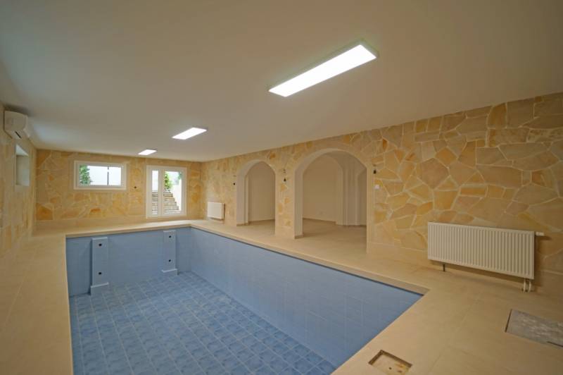 Budapesten a XVII. Kerületben a Pesti útról nyíló 848m2-es telken, eladó egy nettó 523m2-es 7 szoba + 2 nappalis, fűthető belső medencés, háromszintes luxus családi ház.Nyeles telek révén a Pesti úttól az ingatlan 60 méterre helyezkedik el, így a zajterheléstől és a kíváncsi tekintetektől is távol van az élettér.A minőség fontos szempont volt a kilakításnál, a földszinten a padlót 60x120-as márvány lapokkal burkolták, a lépcsőház korlátai rozsdamentes acél és üveg kombóval készültek, a három fürdőszoba szaniterei, bútorai és csaptelepei az Arezzo Design termékeiből lettek ízlésen kiválasztva.A nappaliban a mennyezetbe épített led csíkok modern stílust és világos teret külcsönöznek.A homlokzatok dryvit szigeteléssel lettek ellátva, a thermo nyílászásók három rétegű üveggel szereltek.A hűtésről 10db daikin inverteres klíma, a fűtésről kondenzációs gázkazán gondoskodik, a földszinten, padló fűtéssel, a szuterén szinten és az emeleten radiátoros hőleadással.A melegvíz ellátását is a kondenzációs gázkazán látja el indikrekt tároló segítségével.Külön kazán biztosítja a szuterén szinten elhelyezkedő 8x3,6 méteres 185 cm mély medence fűtését.A riasztórendszer minden nyílászárónál nyításérzékelővel szerelve előre lett vezetékelve, továbbá a kamera rendszernek is ki lettek alakítva a vezetékei.Parkolás az elektromos garázsajtóval szerelt, 13.3 méter hosszú és 5.2 méter széles, 67.66m2-es garázsban lehetséges.A tehermentes ingatlan rugalmasan megtekinthető!Amennyiben hirdetésem felkeltette az érdeklődését vagy egyéb információra van szüksége hívjon bizalommal! hp