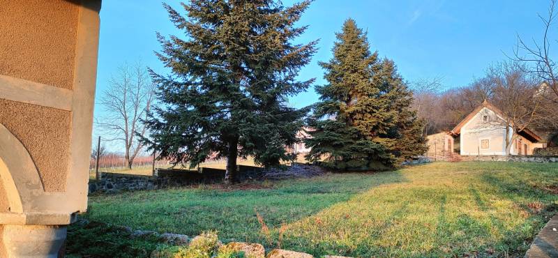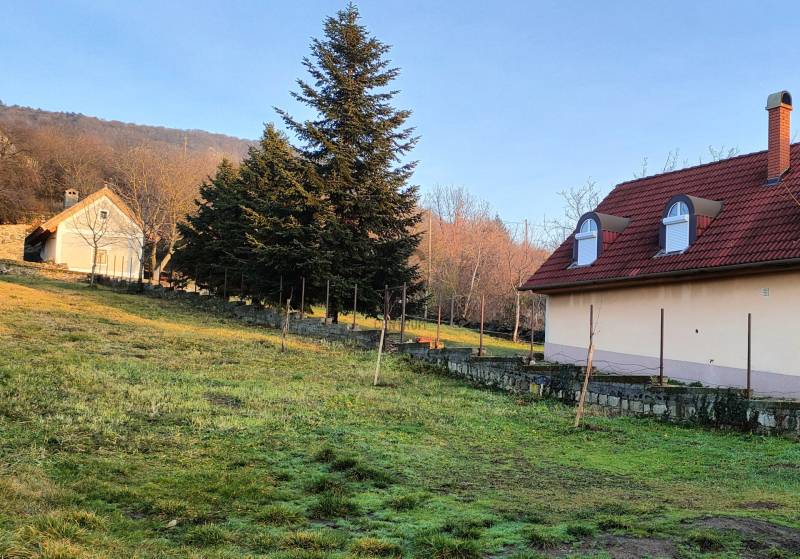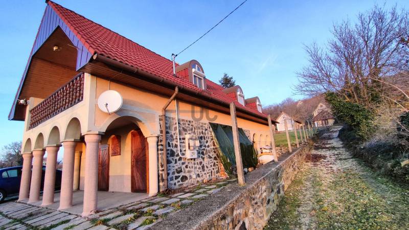 A Szent György-hegy az elmúlt években a Balaton-felvidék egyik legkeresettebb pontjává vált. Hegymagas kedvező fekvésének köszönhetően a környék csendje, a rendezett szőlősorok és a túraútvonalak közelsége egyszerre kínál nyugodt és aktív életmódot. A dűlőút végén fekvő telek már az érkezéskor is egyértelművé teszi, hogy itt a hegy természetes nyugalma a mindennapok része.Ezen a 2383 nm-es, gondozott, enyhén lejtős, szabályos négyszögalakú saroktelek alsó sarkán áll az 1998-ban a meglévő kőpincére téglából felépült ház. A napsugaras motívumú fa bejárati ajtók és a műanyag redőnyös ablakok egyszerre adnak karaktert és praktikumot az épületnek.Az egyik ajtó mögött a FÖLDSZINTI TÁROLÓHELYISÉG (12 m2) található, amelyből járólappal burkolt, részben csempézett 30 m2 nagyságú PINCE nyílik. A másik bejárati ajtón belépve márványlépcsősor vezet fel az EMELETre, ahol az AMERIKAI KONYHÁS NAPPALIba érkezünk. A tér megnyitása és a fény játéka miatt a 22 m2 nagyságú helyiség élénk és tágas, az ERKÉLYre (11m2) kilépve pedig kibontakozik az a részpanoráma, amely egyaránt mutatja a BALATON tükrét és a Keszthelyi-hegység vonulatait.KÉT HÁLÓSZOBA (10 m2, 11,5 m2) is helyet kapott ezen a szinten, mindkettő csendes, a hegy felé forduló hangulatú, valamint itt található a zuhanyzós FÜRDŐSZOBA is. A lépcsőház alatti térben további 2 kintről megközelíthető tárolóhelyiség kialakítására került sor.A ház műszaki adottságai rendezettek és praktikusak: vezetékes VÍZ és VILLANY áll rendelkezésre, a szennyvíz egy 7 m³-es, két tisztítónyílással ellátott DERÍTŐbe távozik. Az emeleti élettér fűtése jelenleg a nappaliban található KANDALLÓ segítségével megoldott, de a központi fűtés rendszere is kiépítésre került, így a későbbi korszerűsítés lehetősége adott.Az épület cseréphéjazata megbízható és időtálló látványt ad.A házban található belső ajtók cserére, a falak kifestésre várnak.Az ingatlan Hegymagas zártkerti részén fekszik, művelési ága: szőlő és gazdasági épület, út, így az adásvételi szerződést közzé kell tenni.Lokációja kiváló, autóval is minden évszakban könnyen megközelíthető.Ezt az ingatlant azok fogják igazán a magukénak érezni, akik keresik a természet közelségét, szeretik, ha otthonukból elindulva egy hosszabb túraösvény vagy egy csendes erdei út néhány perc alatt elérhetővé válik csakúgy, mint a település központja, boltja és a buszmegálló.Ideális választás lehet családoknak, akik nyaralót vagy hétvégi menedéket álmodnak a Balaton-felvidéken; természetkedvelőknek, akik értékelik a hegy csöndjét; vagy akár szálláshelyet kialakítani vágyóknak, akik a Szent György-hegyre érkező vendégeknek szeretnének egy különleges élményt nyújtani.Ha szeretné megtapasztalni a hegyoldal atmoszféráját, kérem, hívjon bizalommal, vagy jöjjön el és nézze meg személyesen a kedvező fekvésű ingatlant.