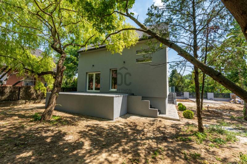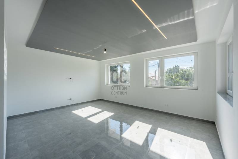 XVII. kerület egyik csendes, zöldövezeti mellékutcájában eladó egy napfényes, 195 m²-es, 671 m²-es telken álló, 4 szobás, 2 fürdőszobás családi ház garázzsal, terasszal és erkélyekkel.Az épület külső homlokzata elkészült, a belső terei kialakításra kerültek. Az ingatlan ára nem tartalmazza a konyhabútor árát. Főbb jellemzők:Modern padlófűtés Ariston gázkazánnal200 literes melegvíz-tárolóMinden helyiségben klíma kiállásElektromos redőny előkészítésRiasztórendszer bekötési lehetőség2 elektromos garázskapu + 2 elektromos kertkapu előkészítésHelyiségek elosztása:Földszint: tágas nappali (30 m²), amerikai konyha-étkező (25 m²), zuhanyzós fürdőszoba, közlekedő, tároló, 25 m²-es teraszEmelet: 3 hálószoba, kádas fürdőszoba, gardrób, külön teraszAlsó szint: garázs, kazánház, tárolókA környék csendes, rendezett, családi házakkal beépített. Buszmegálló (97/E, 162, 197, 262, 990-es járatok) 650 méterre találhatók (9 perc séta), iskola, óvoda, orvosi rendelő, gyógyszertár, bevásárlási lehetőség szintén rövid idő alatt elérhetők.Ez az ingatlan ideális választás azoknak, akik szeretnének egy csendes, zöldövezeti környezetben élni, de mégis közel maradni a városhoz.Egyedi igényekre szabott lakáshitelekkel állunk rendelkezésére.Bankfüggetlen Hitelcentrumunk az országban elérhető összes bank és hitelintézet ajánlatát versenyezteti az Ön számára díjmentesen.Munkatársaink nagy szakmai tapasztalattal, teljes körű CSOK PLUSZ és OTTHON START PROGRAM ügyintézéssel várják Önt előre egyeztetett időpontban akár a normál munkaidő után is.